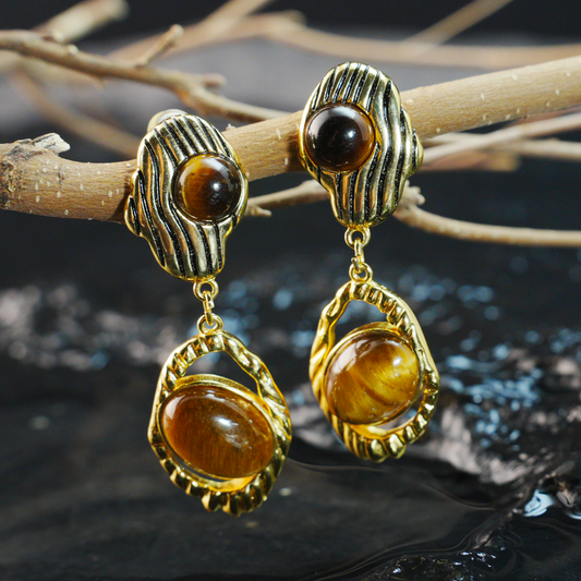 Vintage Tigerauge Ohrringe, Schützende Tropfenohrringe mit mystischem Augendesign, handgefertigter spiritueller Schmuck für Frauen