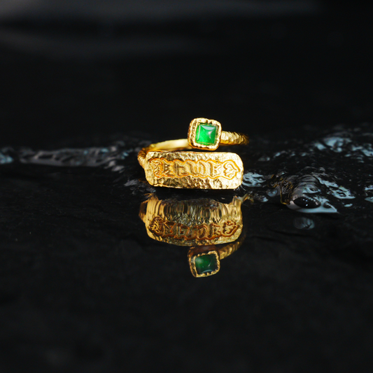 Vintage Tibetischer Amulettring mit grünem Edelstein Verstellbarer Messing Boho Schmuck