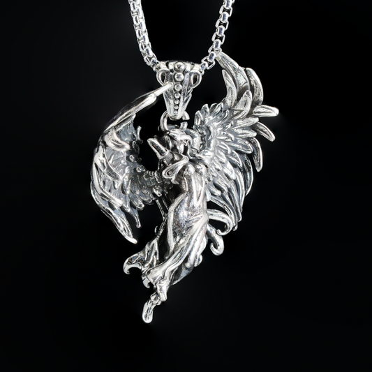 Anhänger mit geflügelter Göttin | Mystische Amulett-Halskette | Künstlerisch geformter Vintage-Anhänger | Handgefertigter Statement-Schmuck