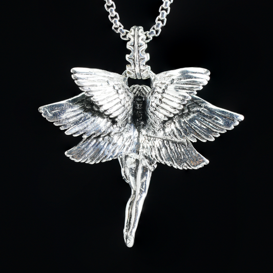 Flügelgöttin Anhänger, Mythos inspirierte geflügelte Halskette, Symbol der Wiedergeburt und des Erwachens, künstlerischer Totemschmuck für Sie, Geschenkidee