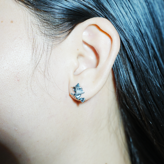 Hexe auf Besen Ohrringe, handgefertigte Fantasy Ohrstecker, Gothic Hexenschmuck für Halloween oder Alltagsmagie