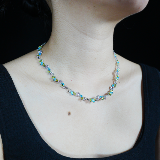Y2K Bunte Edelstein Halskette, Macaron Pastell Candy Schmuck, Geometrischer Choker für Mädchen, Party Mode Halskette, Künstlerischer Statement Stil