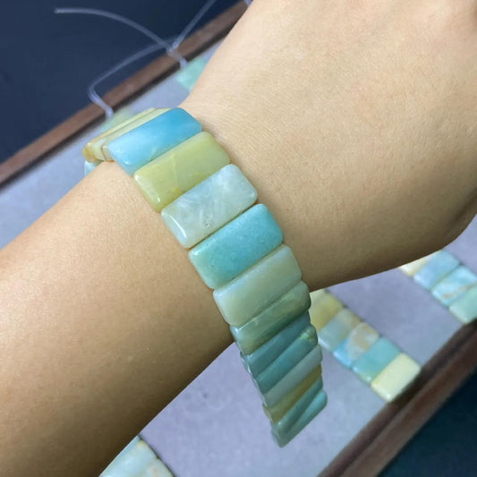 Natürlicher Amazonit aus Mosambik, rechteckige Perlen mit Doppelloch, 20 × 10 × 5 mm Strang | DIY Armbänder, Halsketten & Heilsteinhandwerk