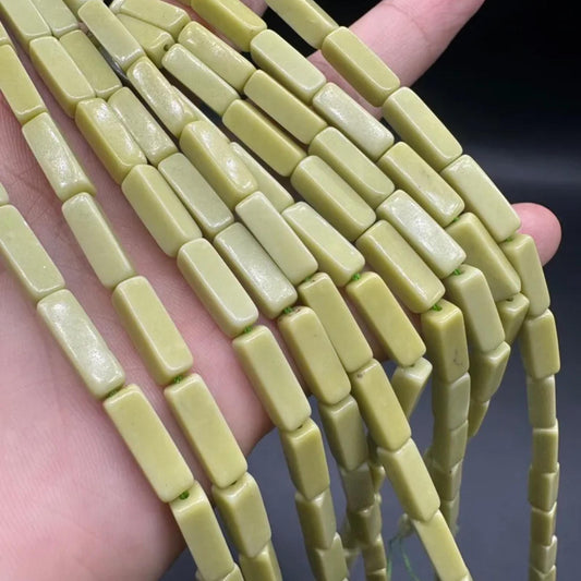 Natürliche Zitronen-Jade-Röhrenperlen 4×13 mm · 38 cm Strang | Gelber Nephrit & Serpentin | DIY-Armband, Halskette & Chakra-Meditationsperlen