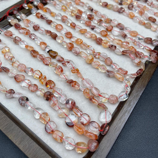 Natürliche Quarz-Splitterperlen, unregelmäßig, 8–9 mm, mittleres Loch, mehrfarbige Einschlüsse | DIY-Armbänder, Halsketten und Ohrringe