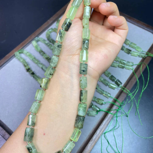 Natürliche Prasiolith-Röhrenperlen 8×13 mm · 38 cm Strang · Rohe grüne Quarzperlen für DIY-Schmuck, Energieheilung und Wohndekor