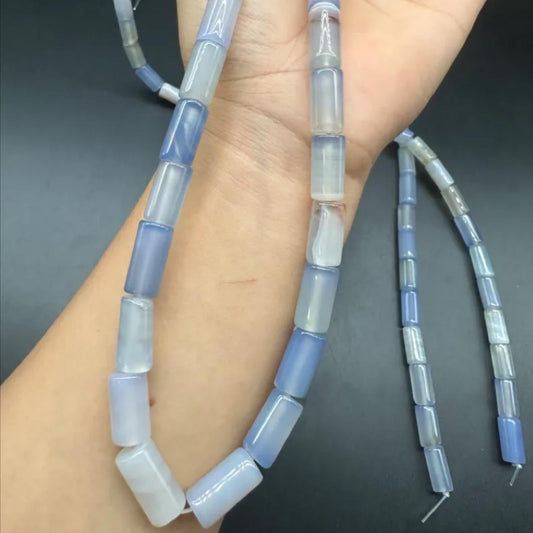 Natürliche meerblaue Chalcedon-Röhrenperlen, 8 x 16 mm, 38 cm Strang | Polierte Zylinderperlen | DIY-Armband, Halskette, Wohndeko & Geschenkzubehör