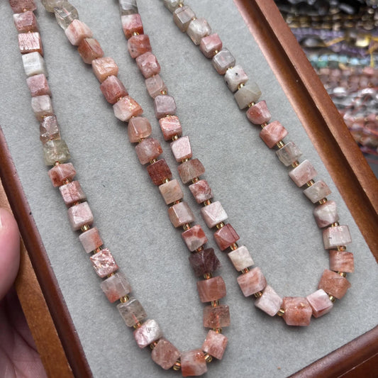 Natürliche Sonnenstein-Würfelperlenstränge für DIY-Schmuck, quadratische Nugget-Edelsteine, leicht poliert, warm getönt, ca. 38 cm