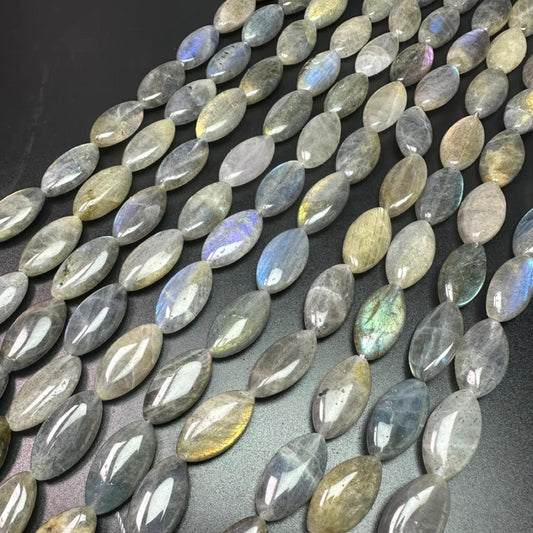 Natürliche Labradorit-Marquise-Perlen 10×20×5 mm · 38 cm Strang · Aurora Borealis Schimmergrau mit Blau, Grün & Gold für DIY-Schmuck