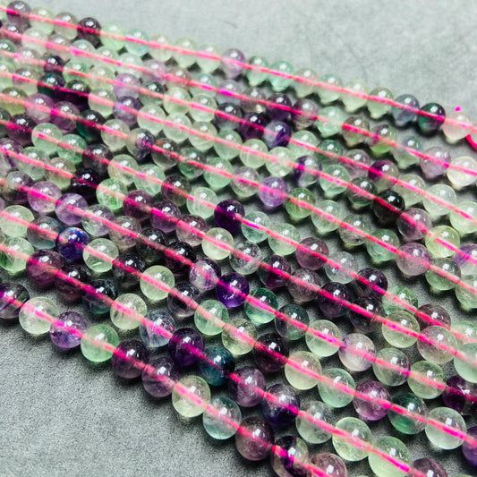 Natürliche facettierte Fluoritperlen, lose | 7,5×7,5 mm · 40 cm · 38 g | DIY-Armband- und Halskettenherstellung | Lila-Grün-Farbverlauf