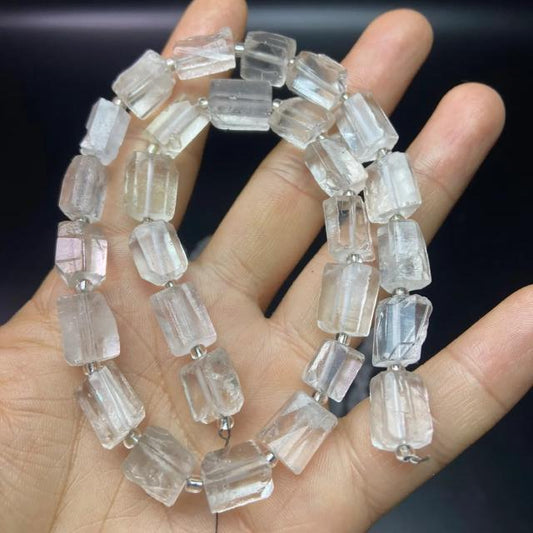 Natürliche, klare Quarz-Zylinderperlen – unregelmäßige Edelsteinperlen in Röhrenform, 8 x 12 mm, 38 cm langer, vorgebohrter Strang, für selbstgemachten Schmuck und Energieheilung
