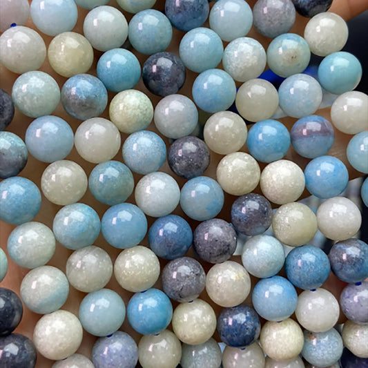 Natürliche Hydroxylapatit-Perlen, 6 mm rund · 38 cm Strang | Zartes Blau-Weiß | DIY-Armband- und Halskettenherstellung | Meditations-Chakra-Heilkristalle