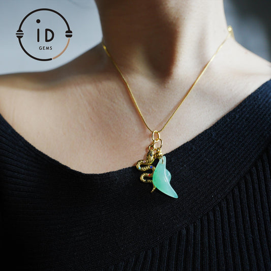 Schlangenanhänger mit Jade-Kristall | Spiritueller Talisman für Schutz & Transformation | Handgefertigter Edelsteinschmuck im Vintage-Stil