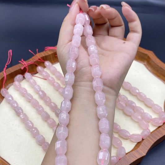 Natürliche Rosenquarz Fassperlen facettiert, rosa Edelsteinperlen Strang für DIY Armband Halskette, Octagon Barrel Beads Schmuckherstellung