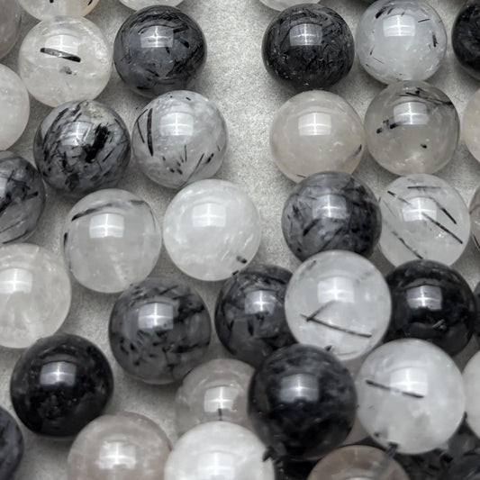 Natürliche schwarze Rutilquarz Perlen für DIY Schmuckherstellung – Edelstein Rundperlen mit Einschlüssen, Glatte 10mm Perlenstrang 38cm