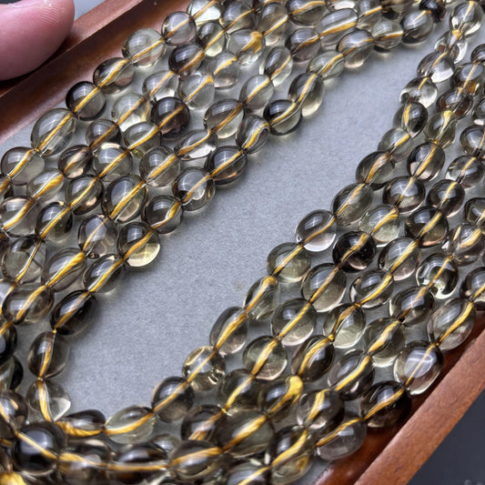 Natürliche Rauchzitronen Olivenform Perlen poliert transparent Edelstein Strang DIY Schmuckherstellung große Nugget Perlen 38cm