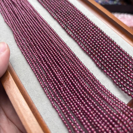 Natürliche Rhodolith Granat Perlen rund glatt Mikroperlen Edelsteinstrang für DIY Armbänder Halsketten Schmuckdesign 2mm 38cm