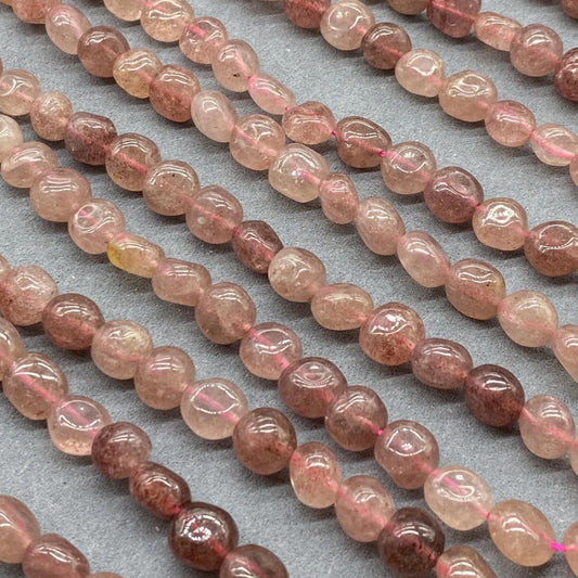 Natürliche Strawberry Quarz Perlen, unregelmäßige runde Kristallperlen, Heilsteine Strang für DIY Schmuckherstellung, ca. 38cm