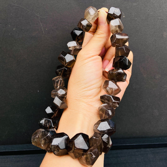 Natürliche Rauchquarz Perlen Strang, unregelmäßig facettierte Kristall Nuggets für Schmuckherstellung, Boho DIY Heilstein Bastelperlen 40cm