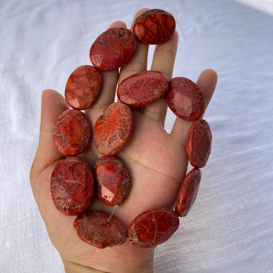 Natürliche rote Korallen Ovalperlen, polierte Edelsteinperlen, Boho DIY Schmuckherstellung, große Nuggets für Halsketten & Armbänder