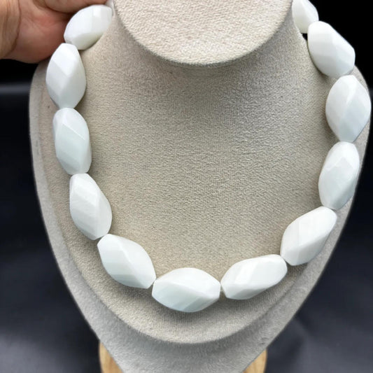 Natürliche weiße Achat Perlen, große facettierte ovale Edelsteine mit Mittelbohrung, polierter Strang für DIY Schmuckherstellung