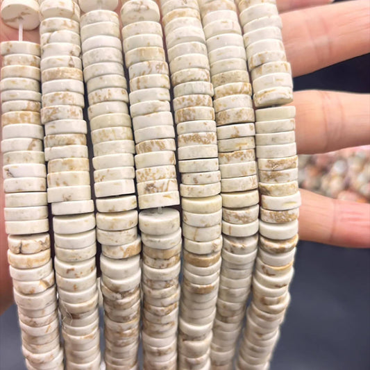 Natürliche weiße Magnesit Heishi Perlen, polierte Disc Nuggets mit Mittelbohrung, Edelstein Strang für DIY Schmuckherstellung