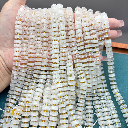 Natürliche weiße Quarz Heishi-Perlen mit goldenen Abstandshaltern – Kristallscheiben für DIY Schmuck, Halsketten & Armbänder