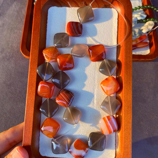 Naturstein Perlen braun gestreift für Schmuckherstellung, Boho DIY Zylinder Edelstein, Achat Bastelperlen für Armband oder Halskette
