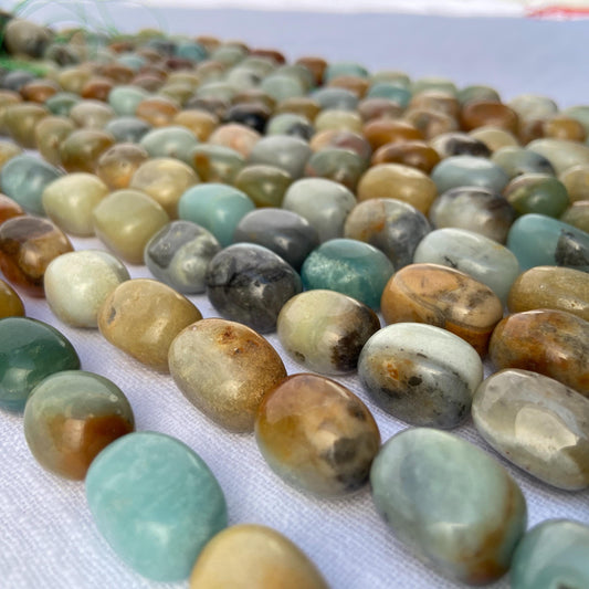 Boho Schmuckperlen für Armbänder Halsketten, Natürlicher Amazonit Edelstein, Bunte Nugget Perlenstrang für DIY Projekte