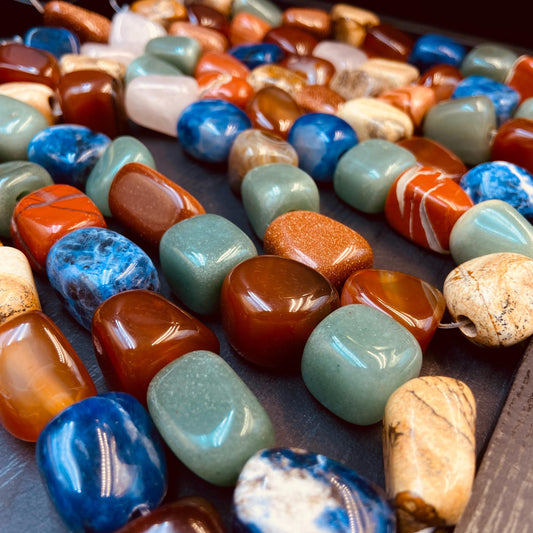 Bunte Edelstein Perlen für Schmuckherstellung · Naturstein DIY Großlochperlen · Boho Heilstein Mix · Tumbled Kristalle Bastelperlen