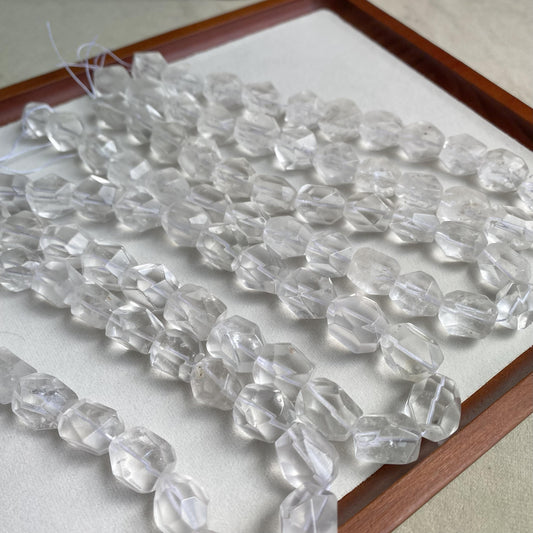 Facettierte klare Quarzperlen für DIY Schmuckherstellung, Naturstein Perlenstrang, Boho Bastelperlen für Armband oder Kette