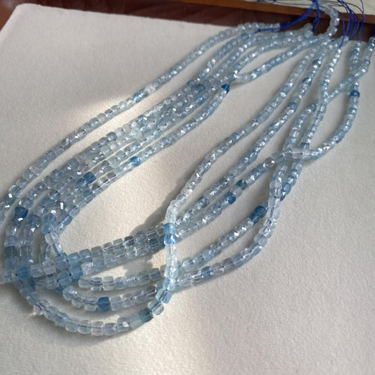 Facettierte Aquamarin Rondelle Perlen für DIY Schmuckherstellung, Hellblaue Edelstein Spacer Perlenstränge im Boho Stil handgefertigt