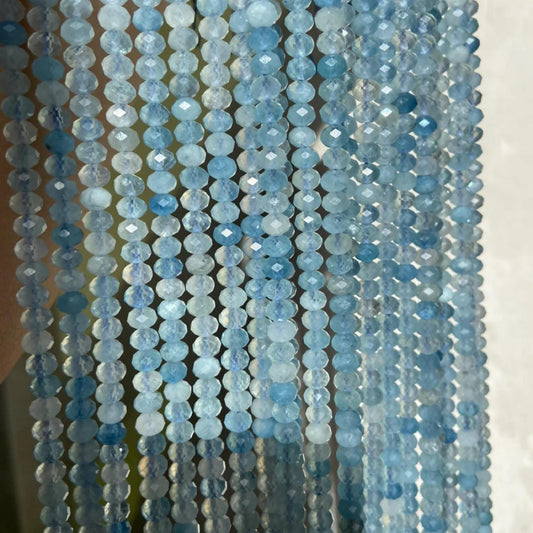 Natürliche facettierte Aquamarin-Rondellperlen, 5,8 × 4 mm, 38 cm Strang | Klare ozeanblaue Edelsteinperlen für selbstgemachte Armbänder, Halsketten und Chakra-Meditation
