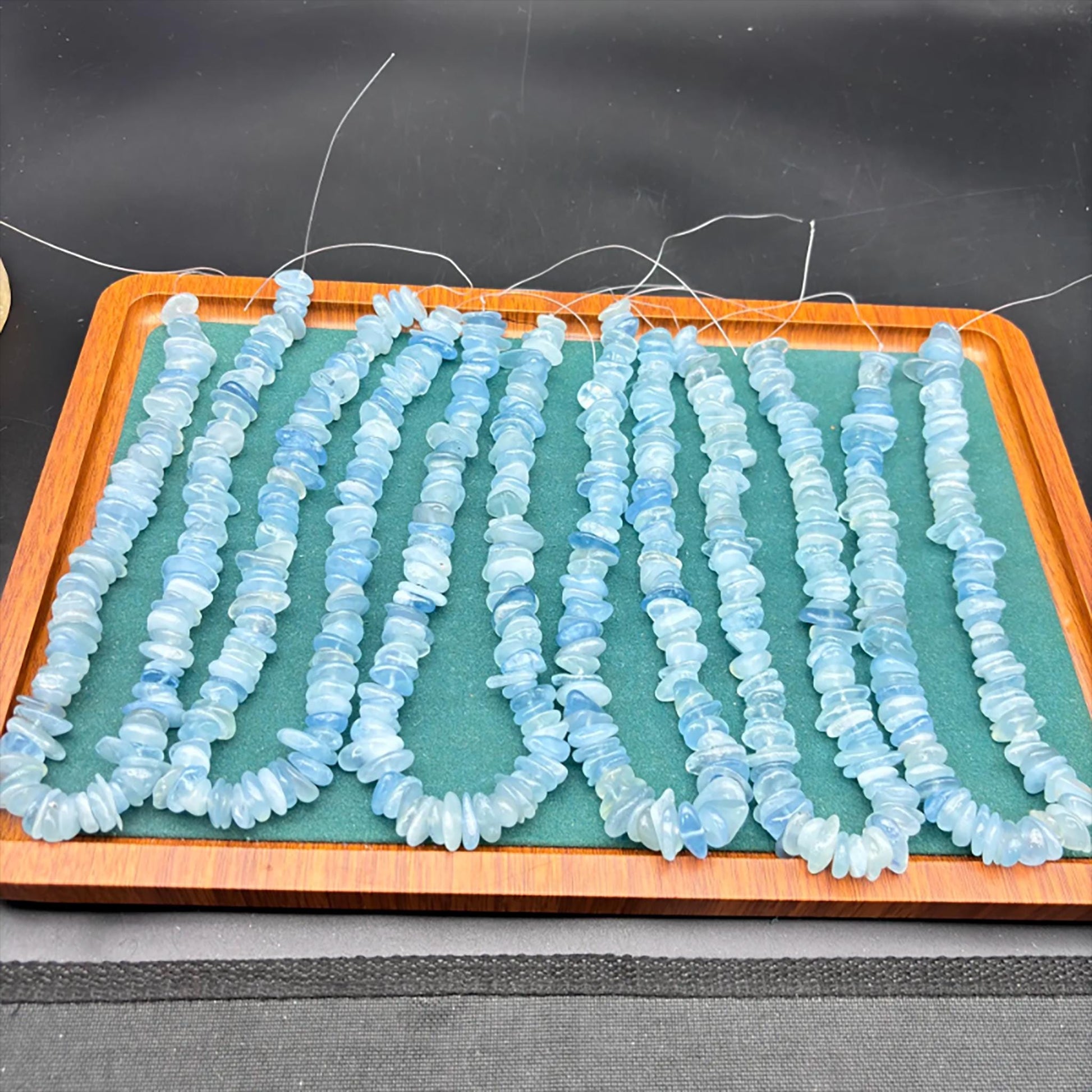 Aquamarinblaue Splitterperlen – Polierte unregelmäßige Kristallchips für DIY Schmuck, Armbänder & Halsketten