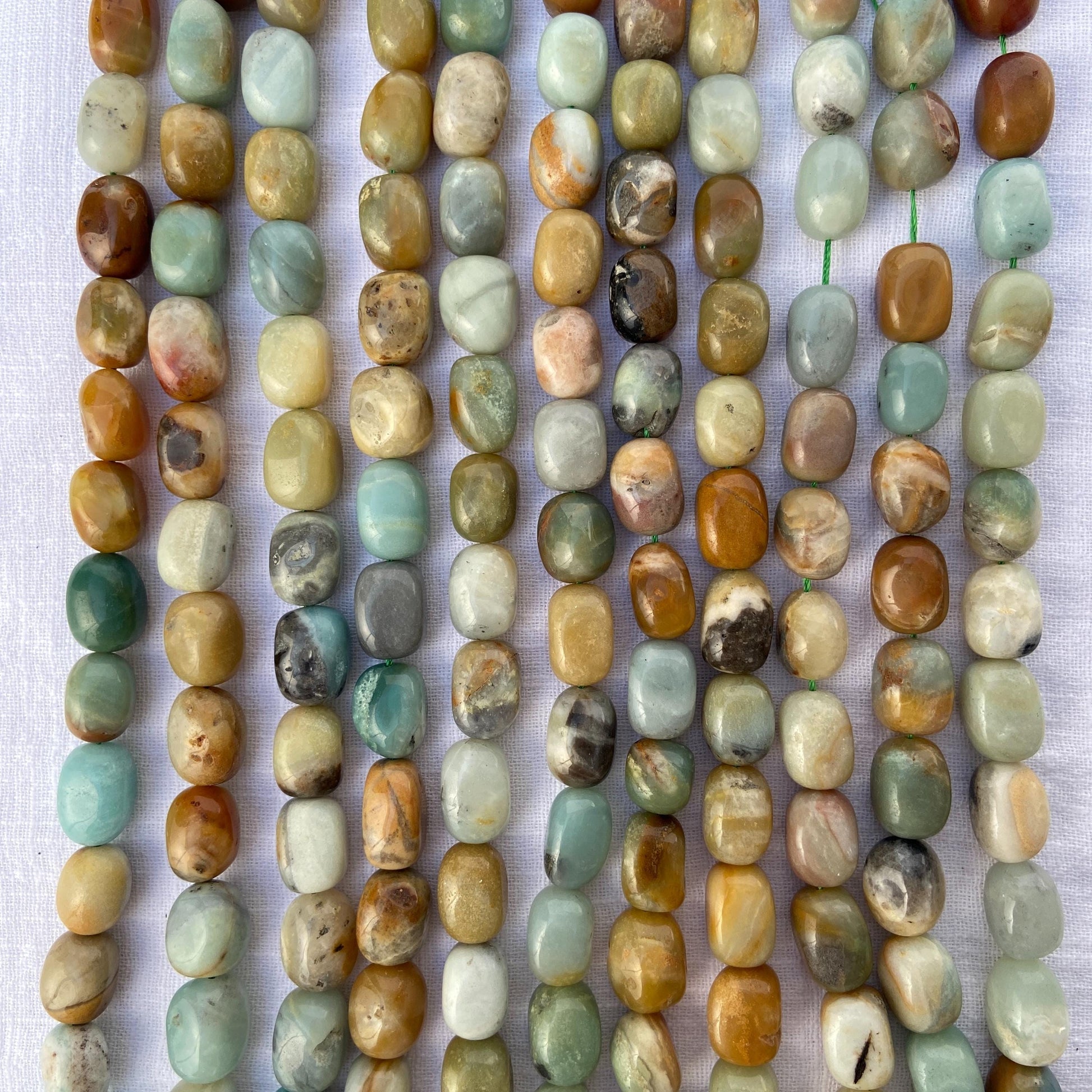 Boho Schmuckperlen für Armbänder Halsketten, Natürlicher Amazonit Edelstein, Bunte Nugget Perlenstrang für DIY Projekte