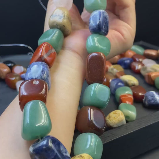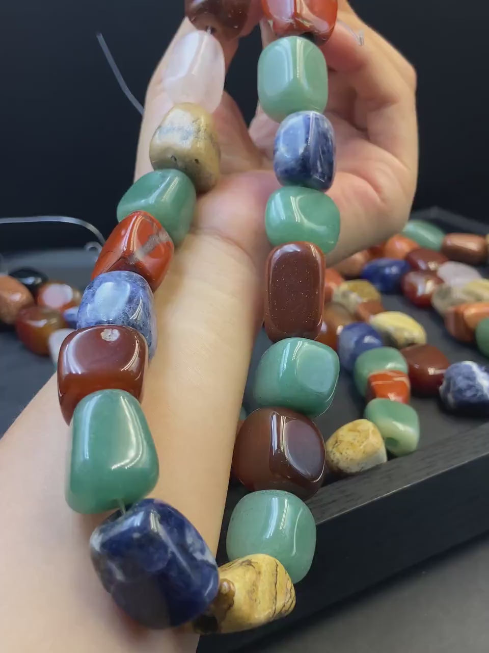 🔹 Material: Natürliche Mischsteine - darunter Aventurin, Jaspis, Sodalith, Quarz, Karneol, Goldfluss usw.