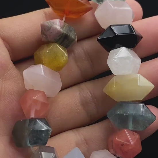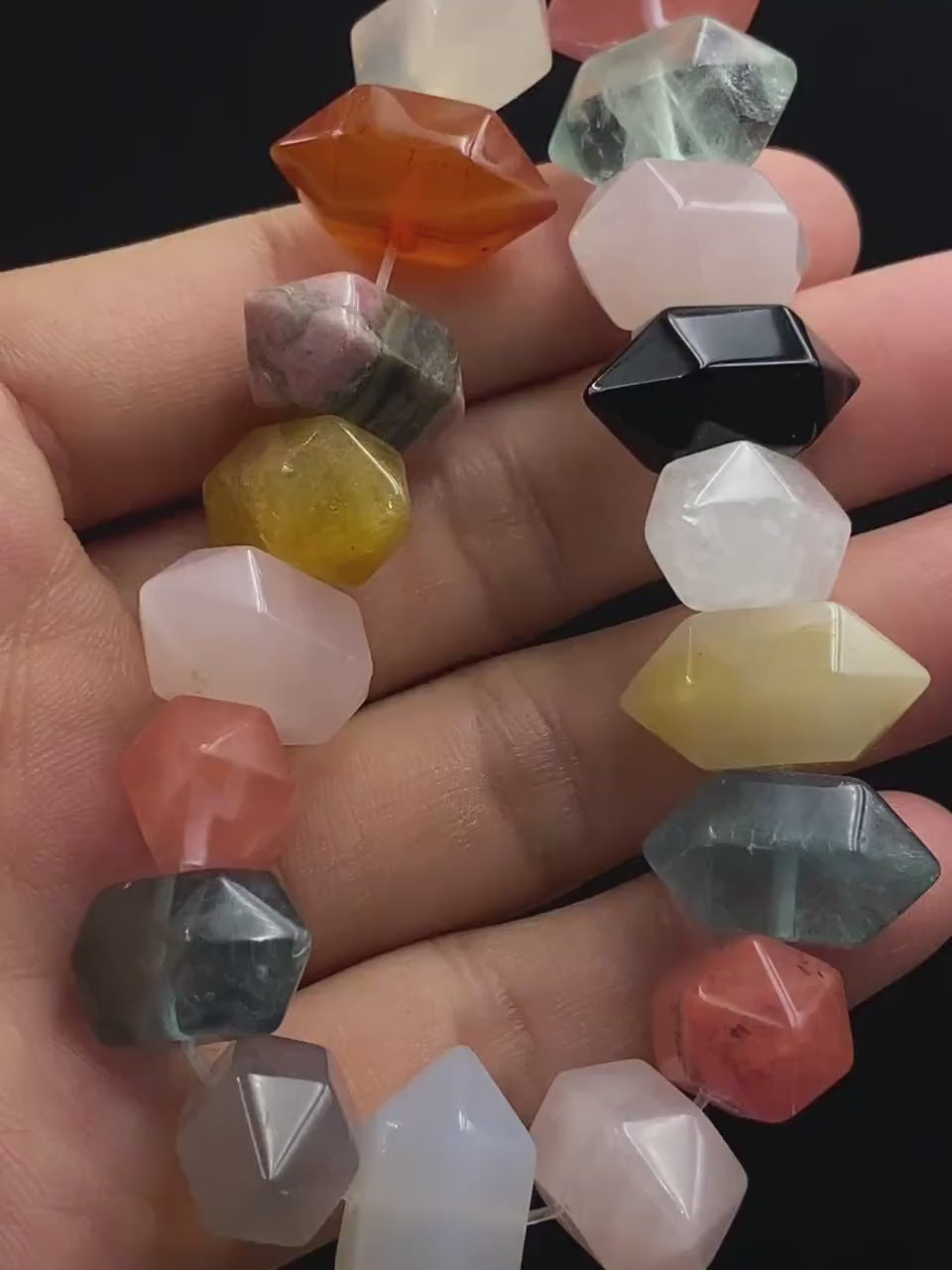 Dieser wunderschöne Mix aus natürlichen Edelstein Doppelspitzen Perlen bringt Farbe und Energie in jedes DIY-Projekt. Ideal für kreative Schmuckliebhaber und Boho-Designs 🌈✨