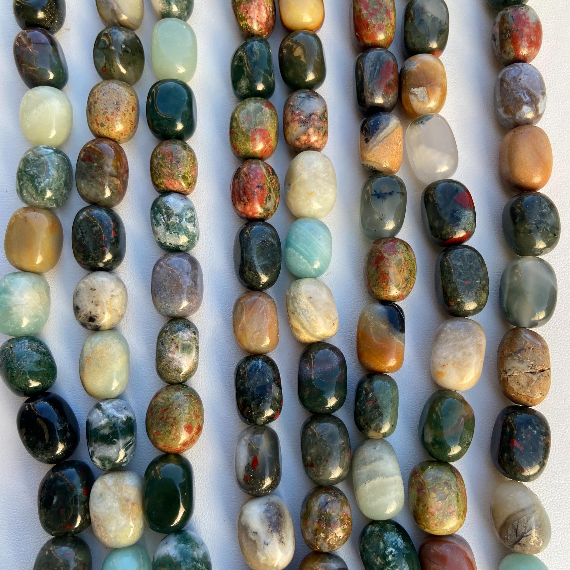 Bunte Natursteinperlen für Schmuckherstellung, Gemischte Achat und Amazonit Trommelsteine, Boho Chakra Nugget Strang für DIY Armbänder