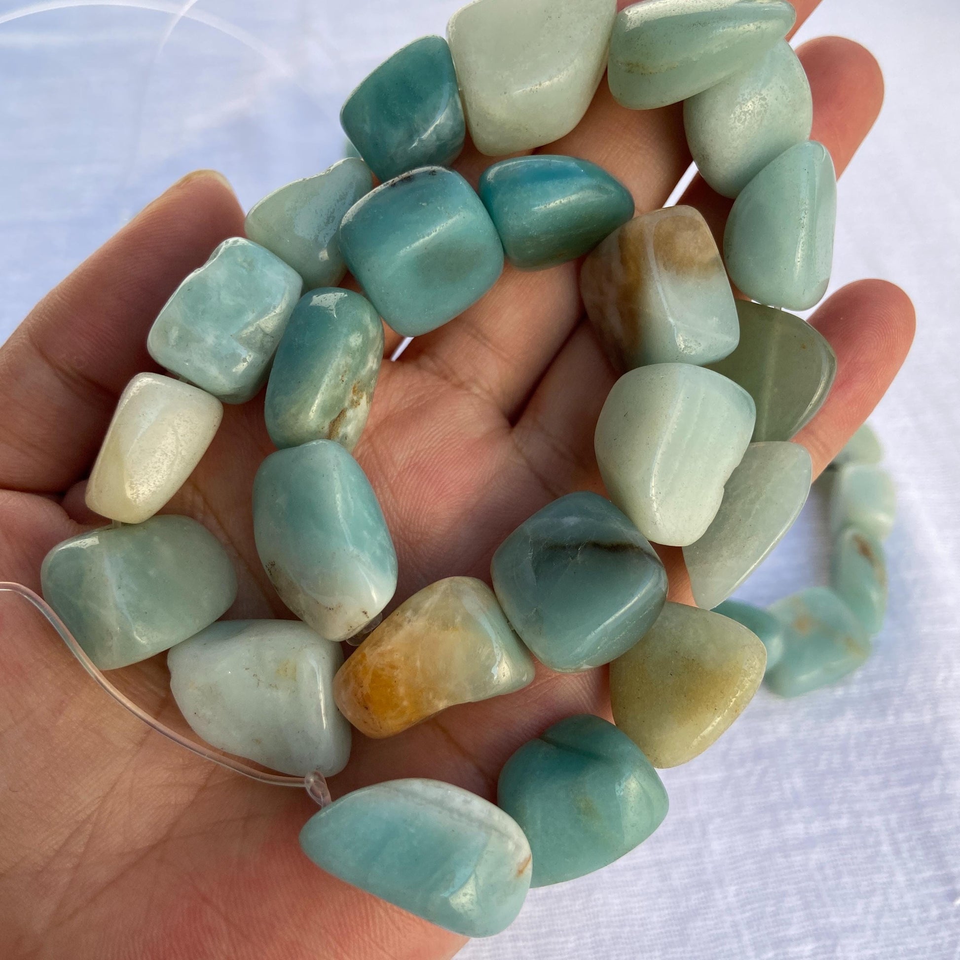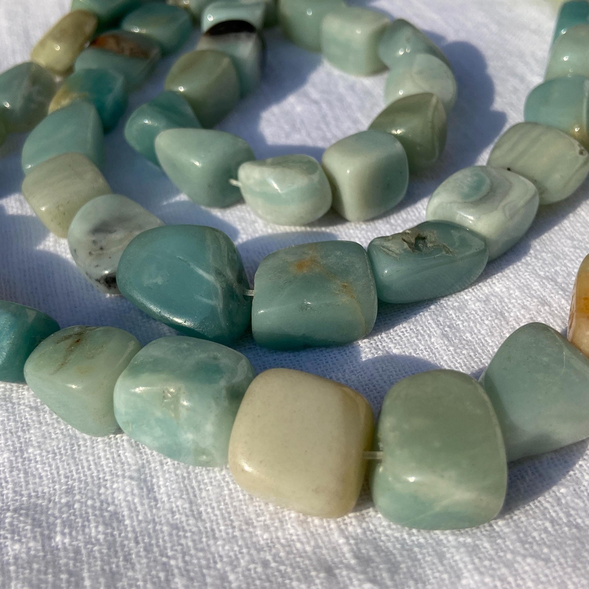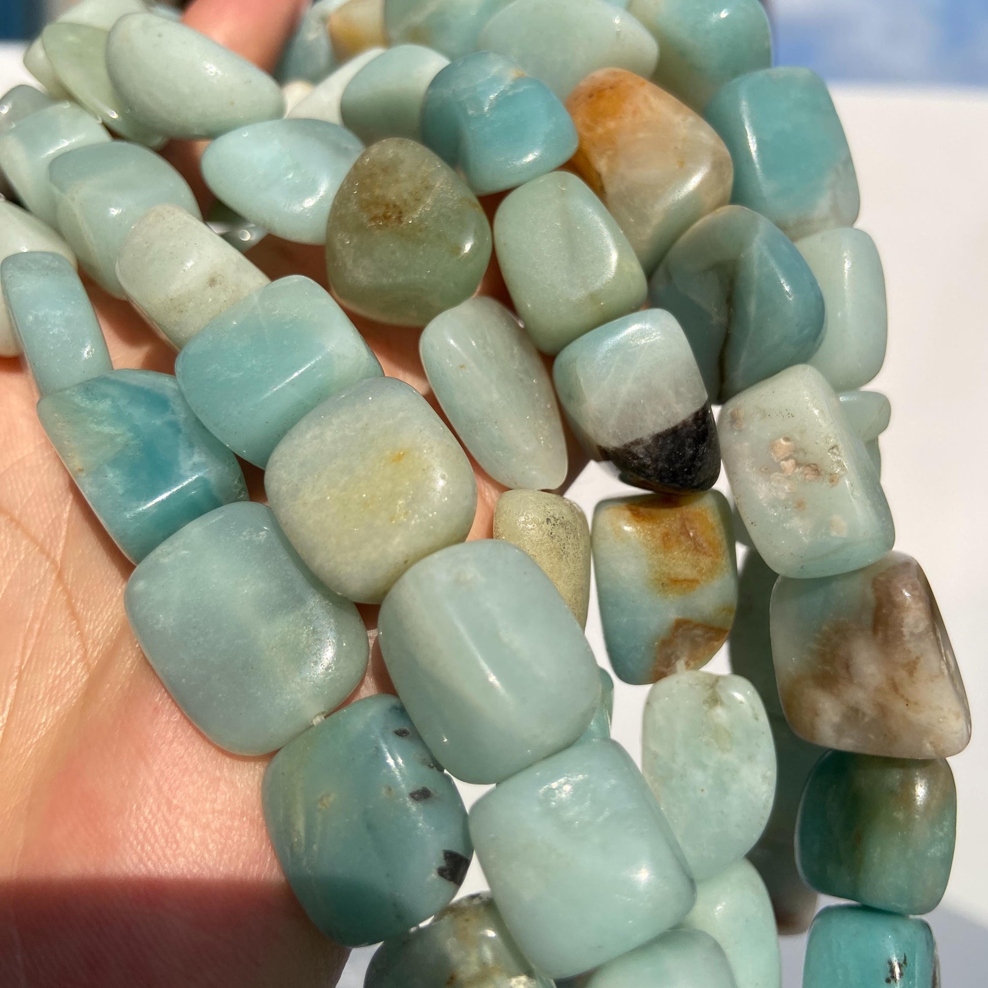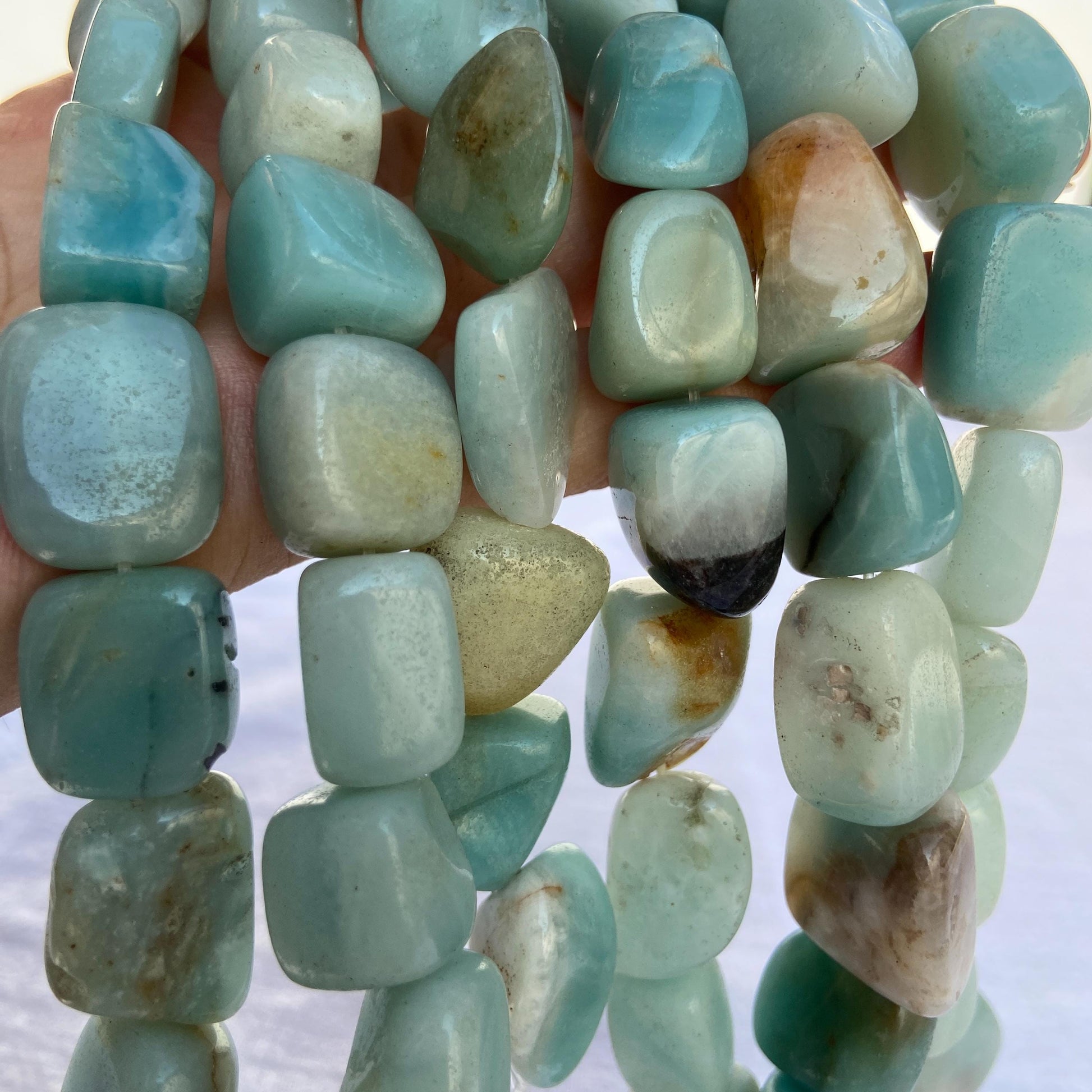 Bringe mit diesen wunderschönen Amazonit Nugget Perlen in zartem Türkisgrün einen Hauch von Natürlichkeit in deine Schmuckkreationen 💚. Jede Perle wurde sorgfältig poliert und zeigt individuelle Maserungen - perfekt für handgemachte Boho-, Natur- oder Heilstein-Schmuckstücke.