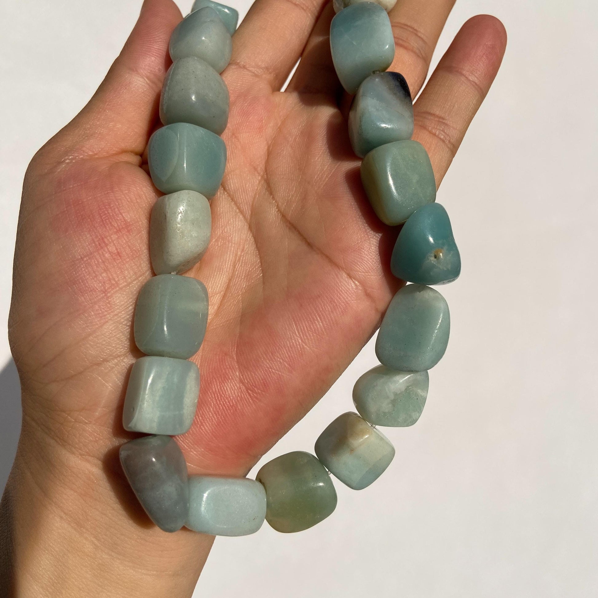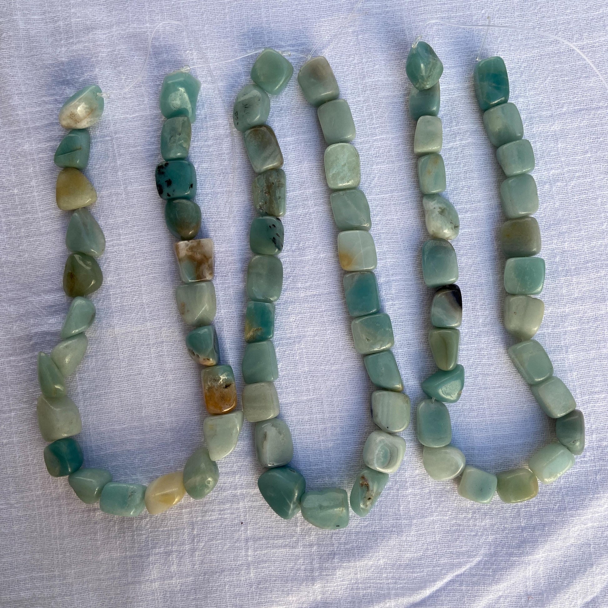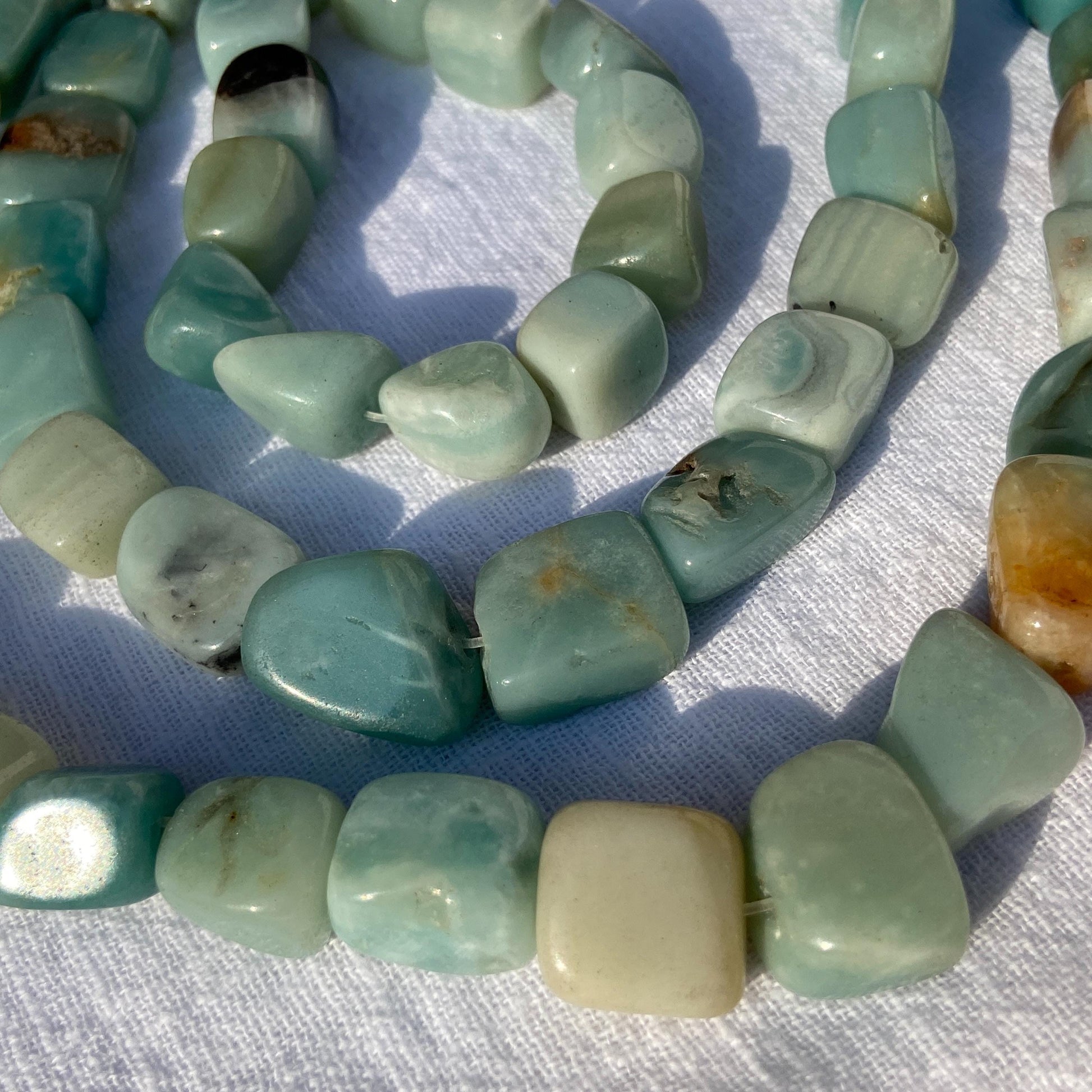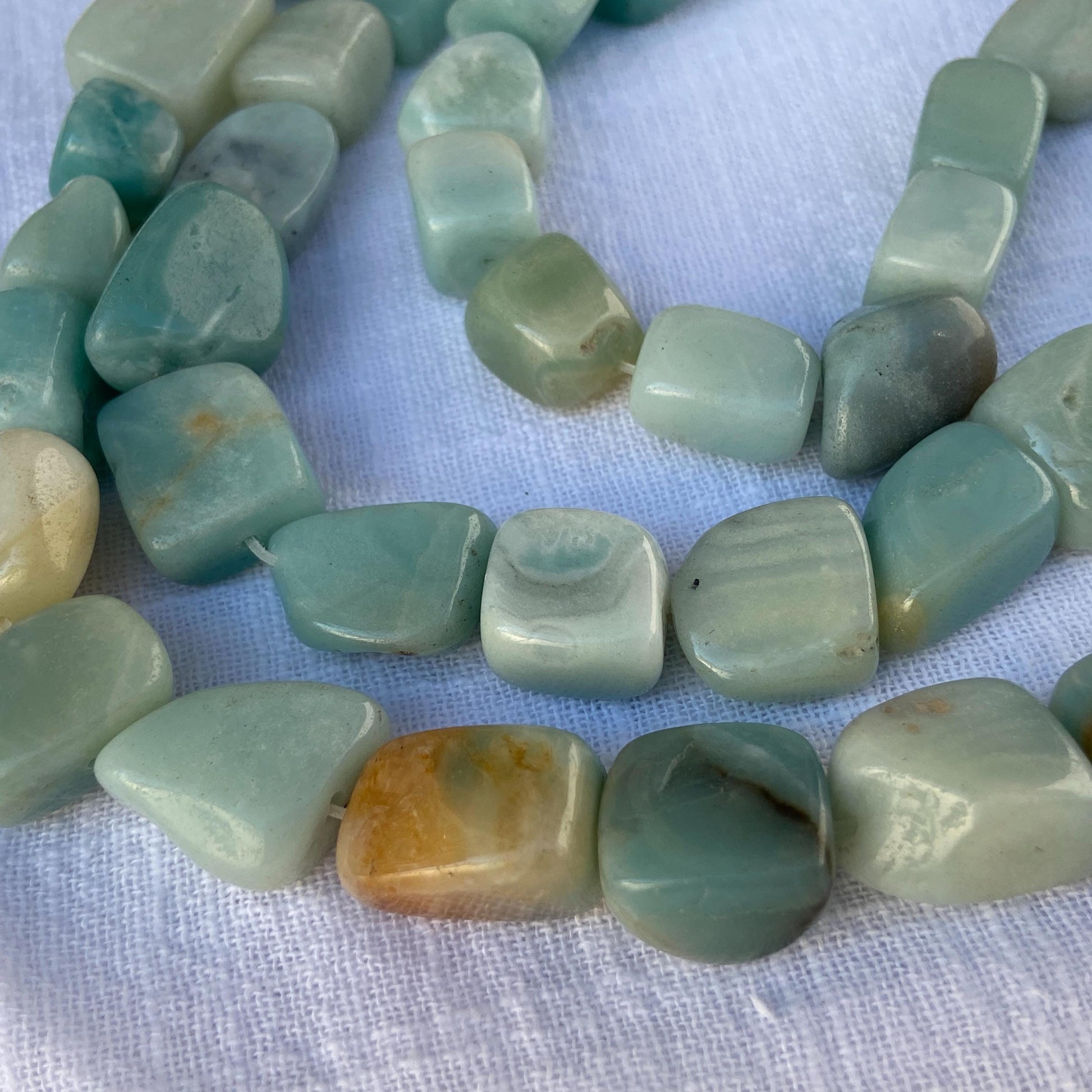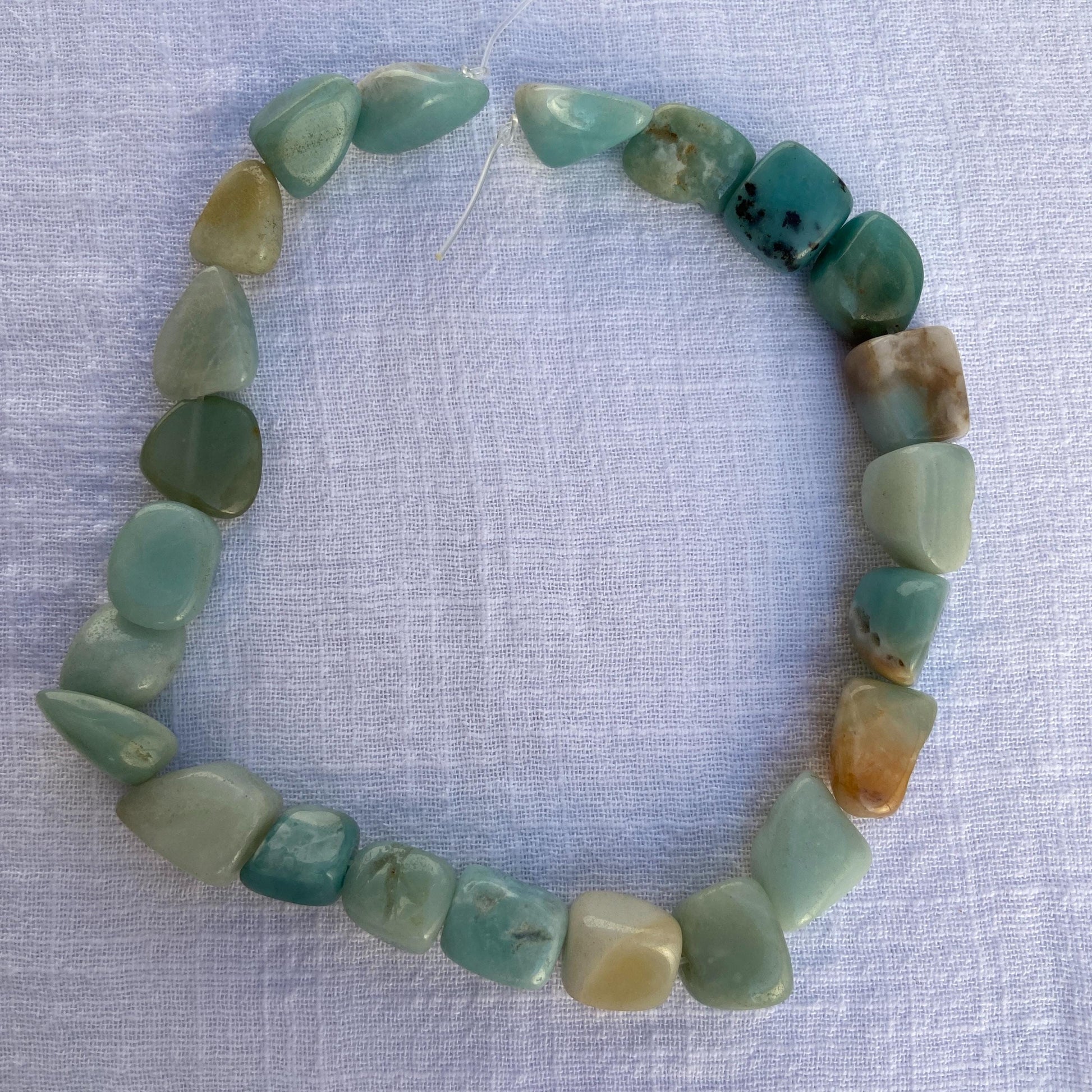 Bringe mit diesen wunderschönen Amazonit Nugget Perlen in zartem Türkisgrün einen Hauch von Natürlichkeit in deine Schmuckkreationen 💚. Jede Perle wurde sorgfältig poliert und zeigt individuelle Maserungen - perfekt für handgemachte Boho-, Natur- oder Heilstein-Schmuckstücke.