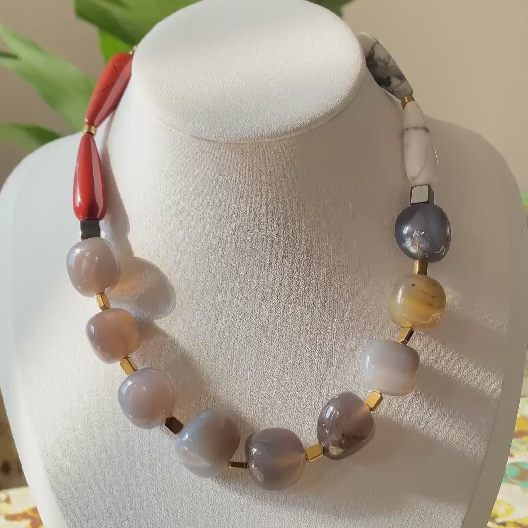 Chunky Edelstein Halskette · Natürlicher Achat & Rotstein · Boho Statement Schmuck · Handgemachte Choker Kette Geschenkidee