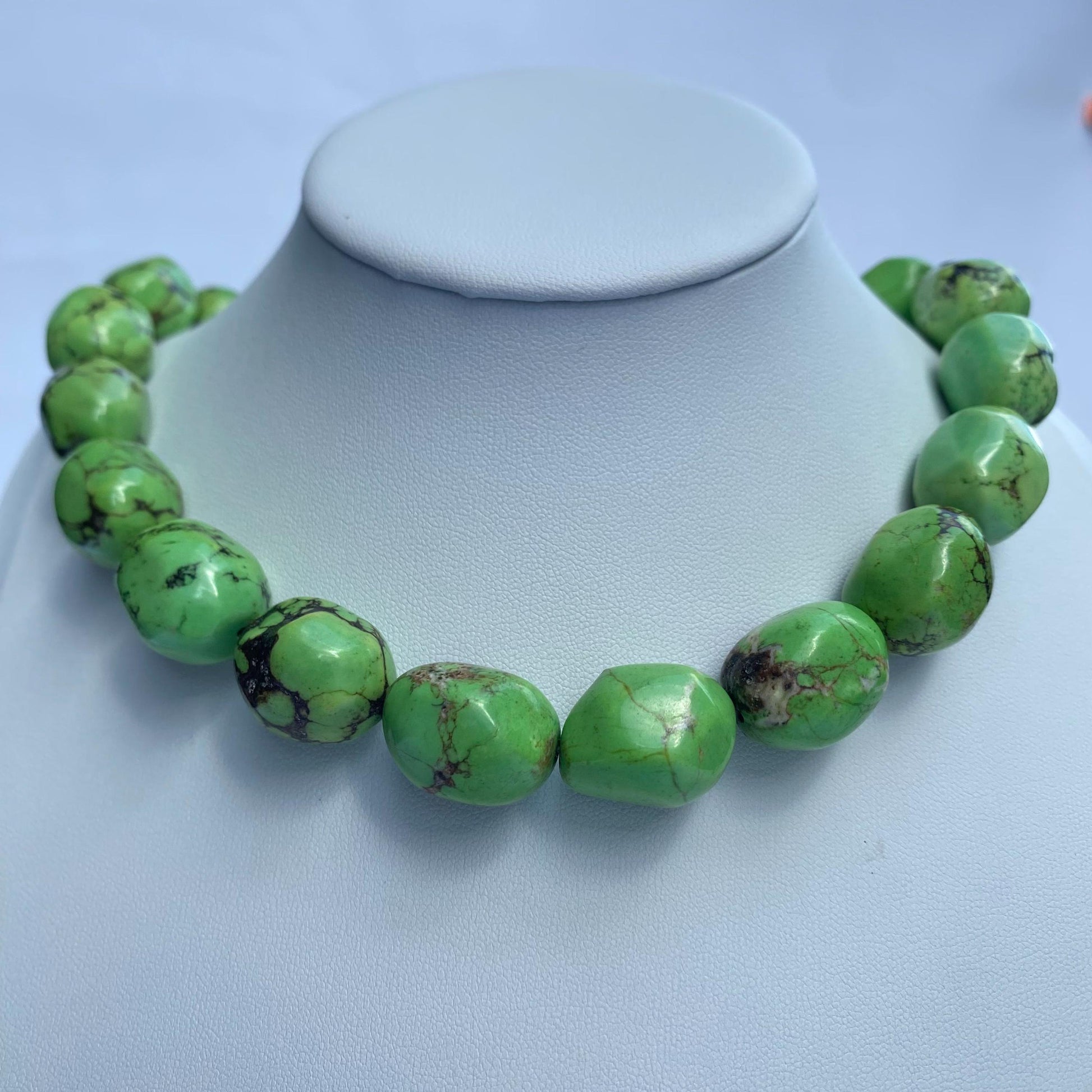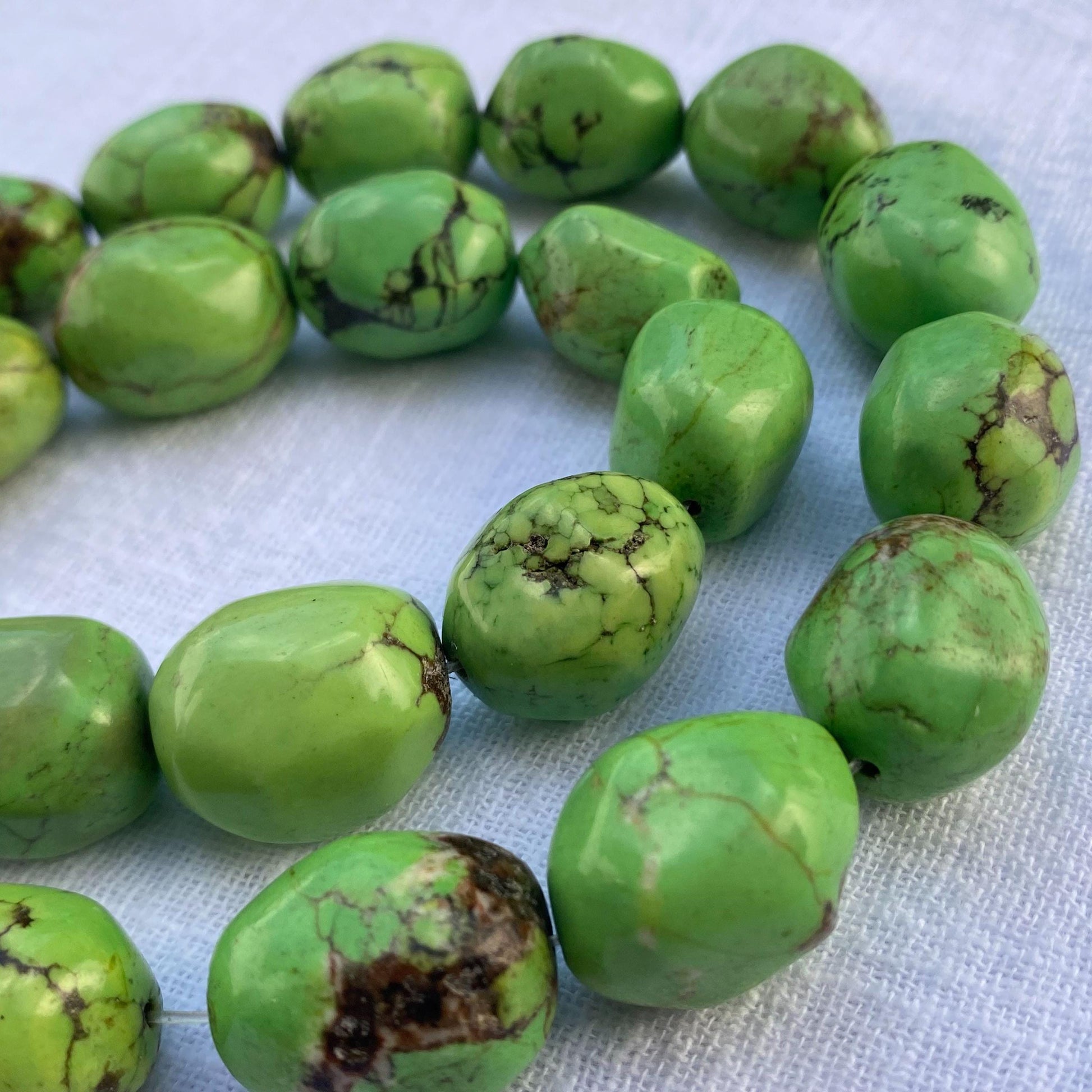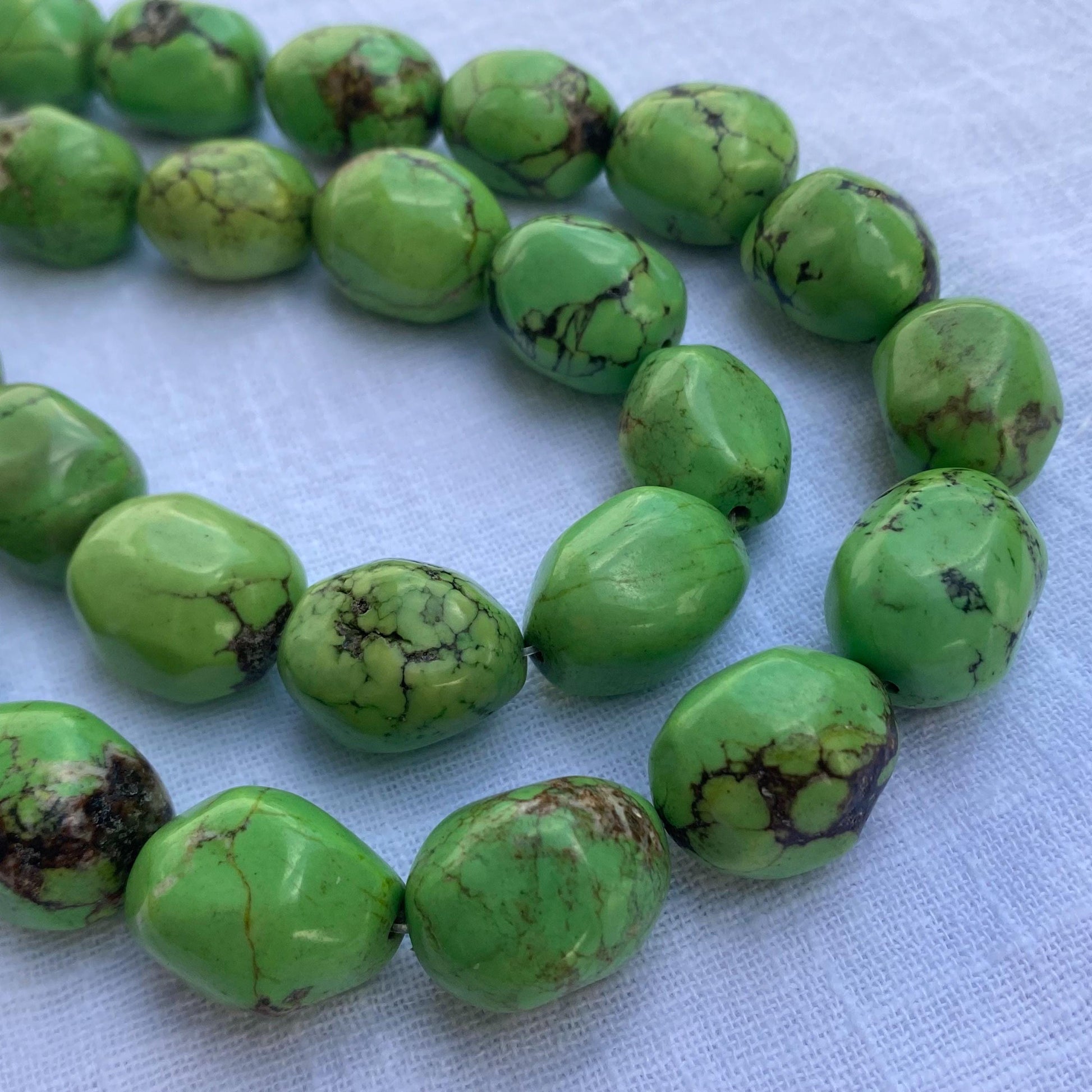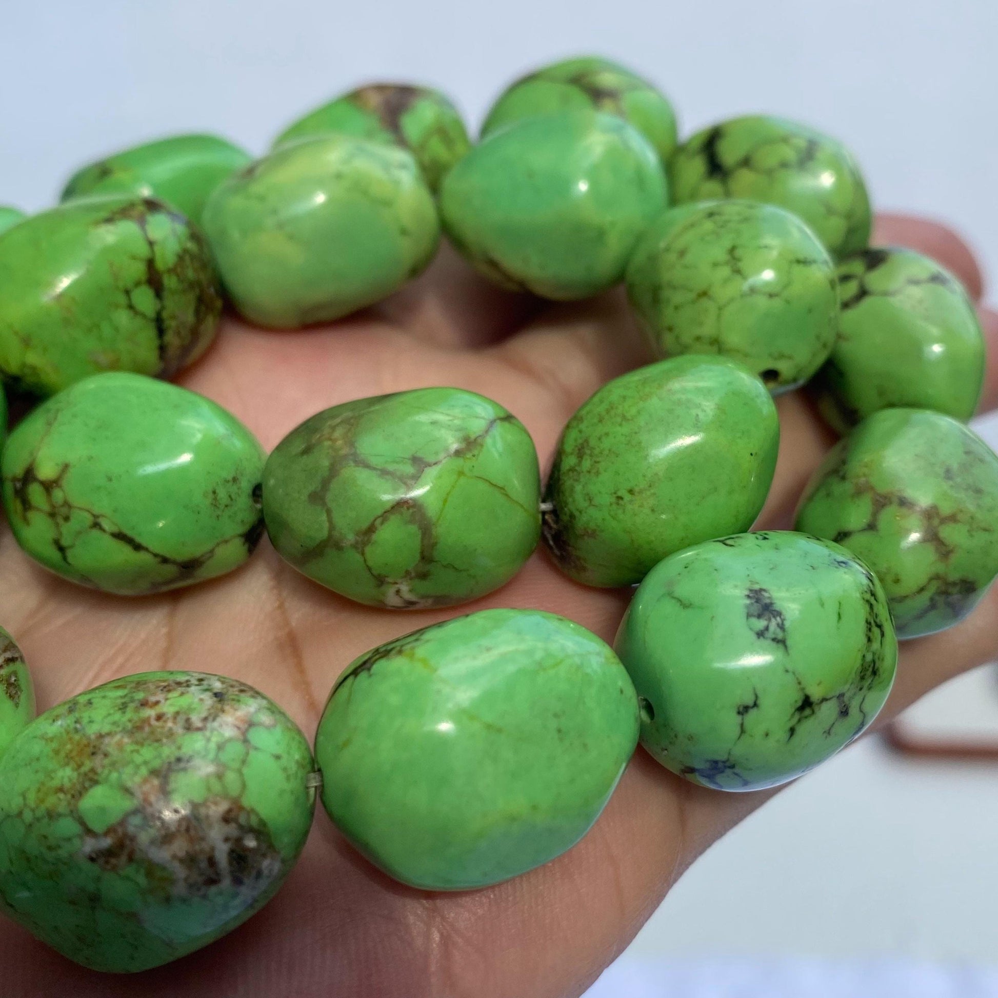 Chunky grüne Nugget Perlen aus synthetischem Türkis für DIY Schmuckherstellung, Edelsteinperlen im natürlichen Look, ca. 38cm Strang