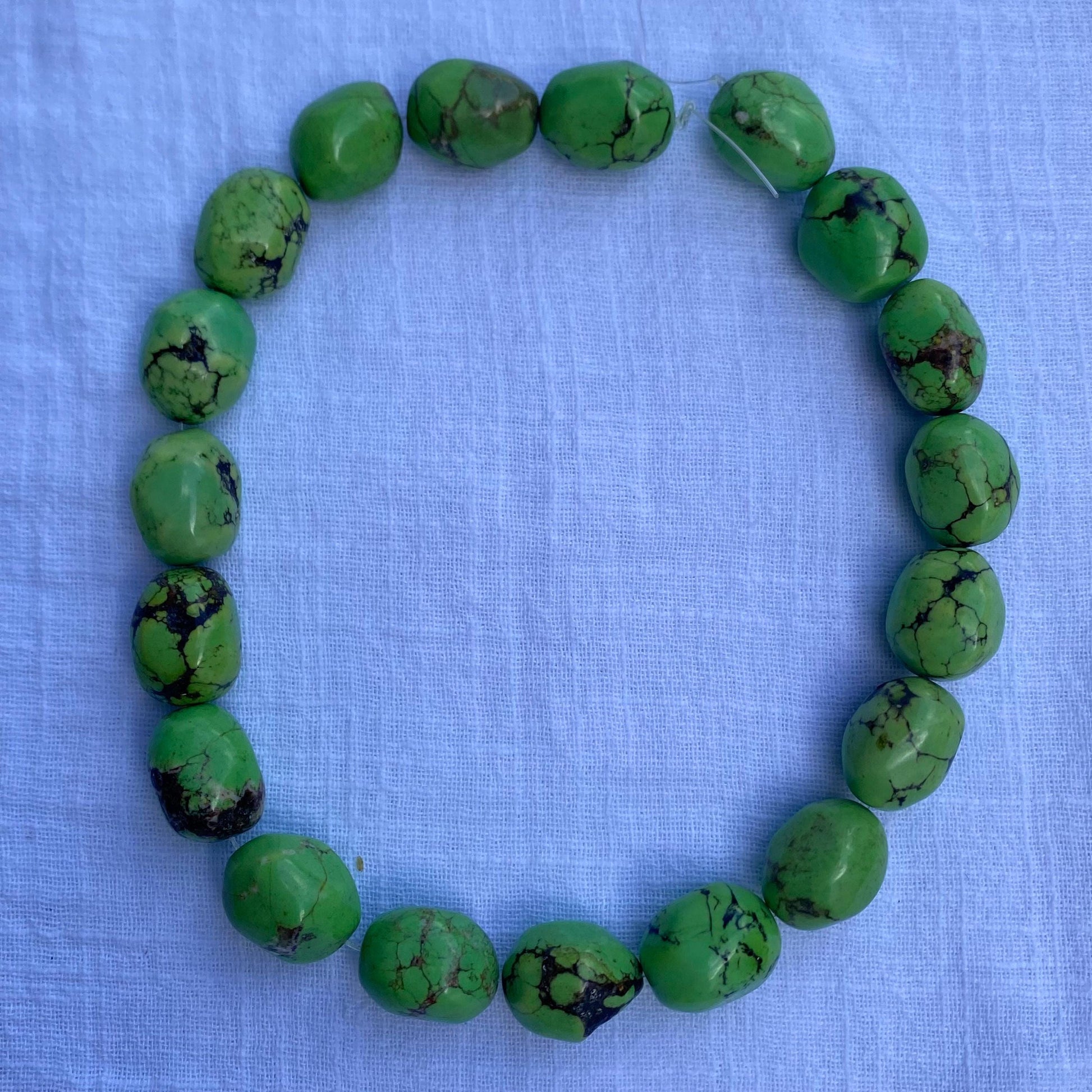 Entdecke unsere auffälligen Nugget-Perlen aus synthetischem Türkis - die perfekte Wahl für deine DIY-Schmuckprojekte 💚. Diese einzigartigen Perlen bieten einen natürlichen, rustikalen Look mit ihren charakteristischen Adern und lebendigem Grün. Ideal für Boho-, Ethno- und Naturdesigns!