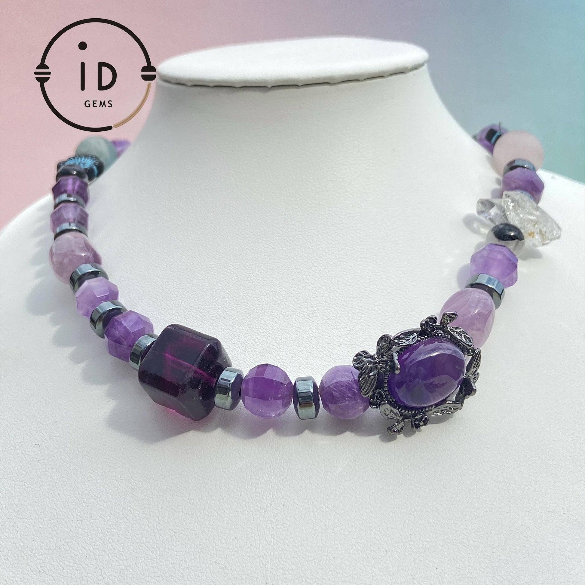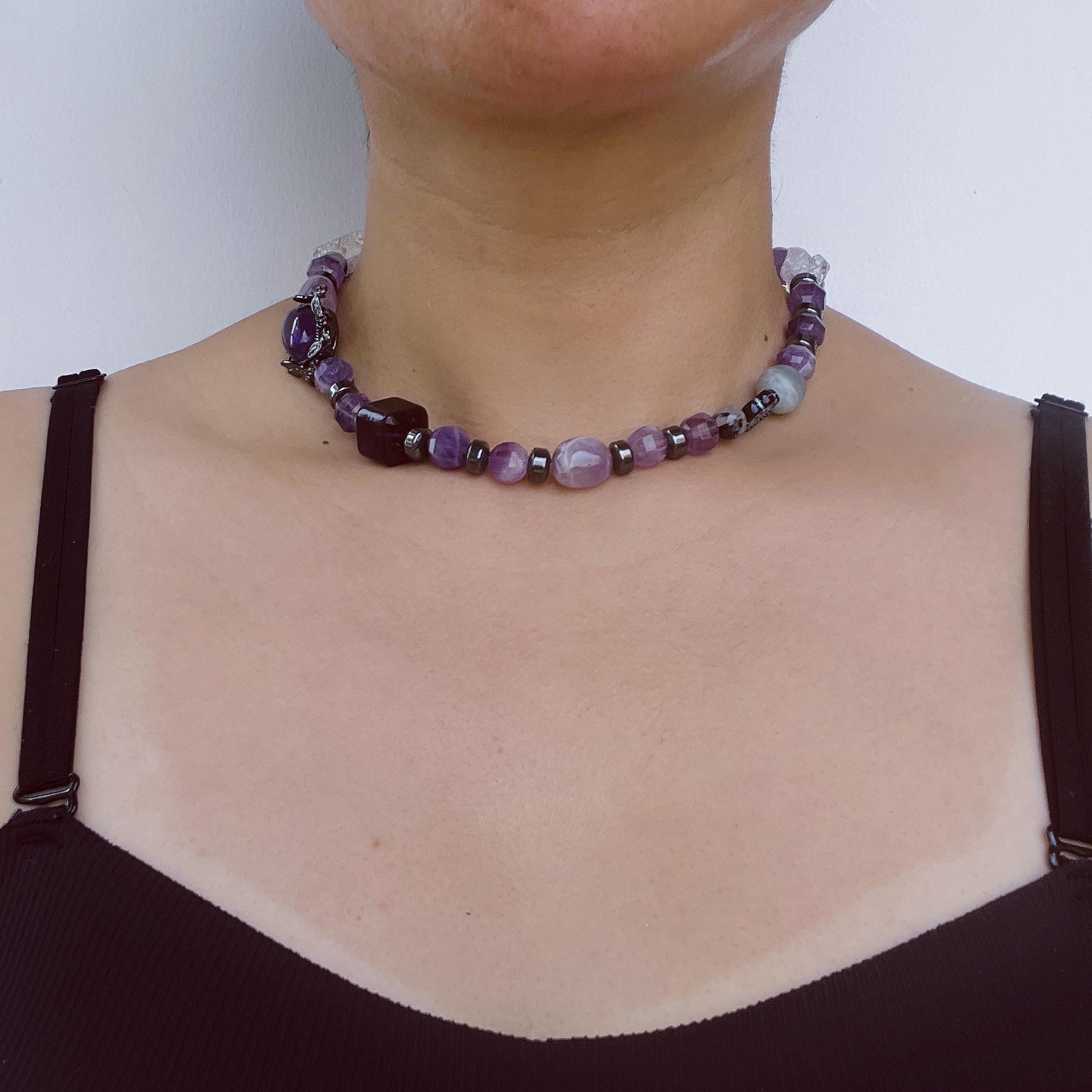 Dicke Amethyst-Halskette mit handgefertigtem Design im spirituellen Boho-Stil|Geschenk für Meditationsräume