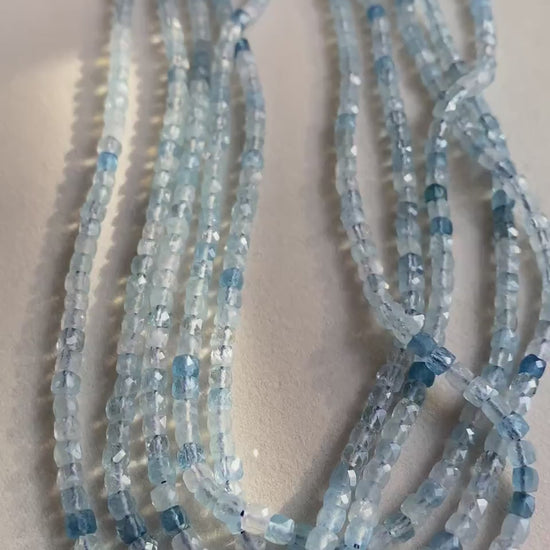 Facettierte Aquamarin Rondelle Perlen für DIY Schmuckherstellung, Hellblaue Edelstein Spacer Perlenstränge im Boho Stil handgefertigt