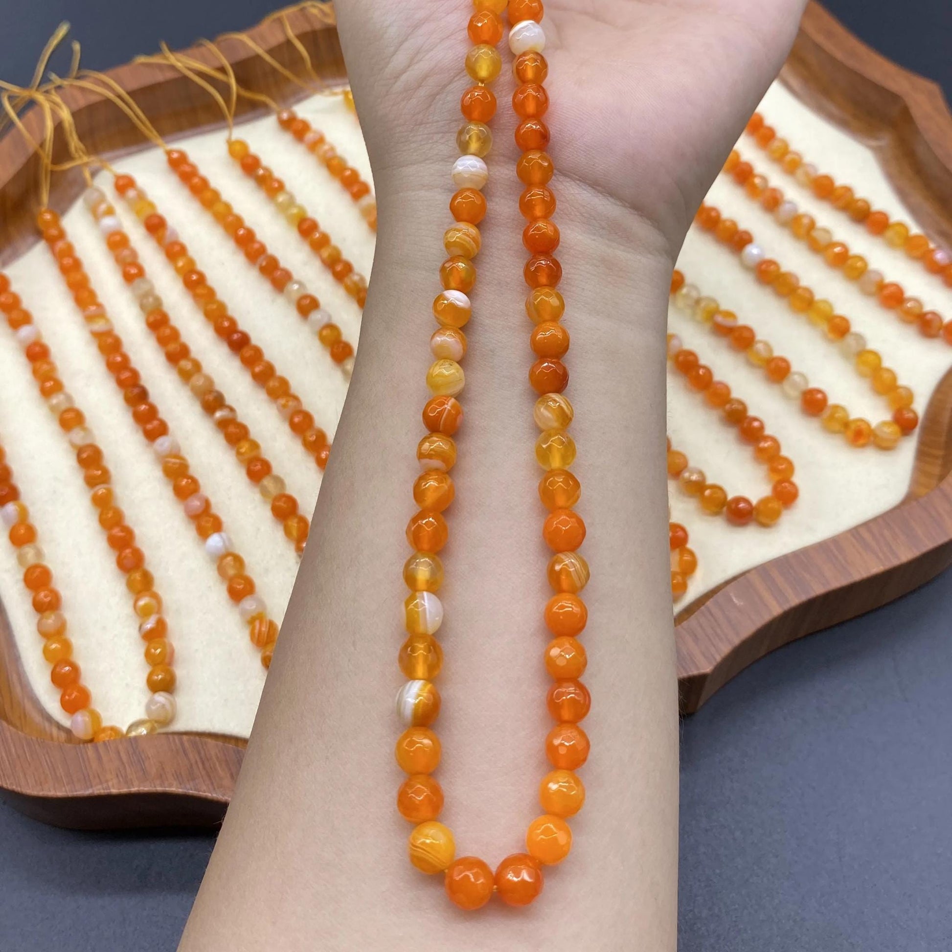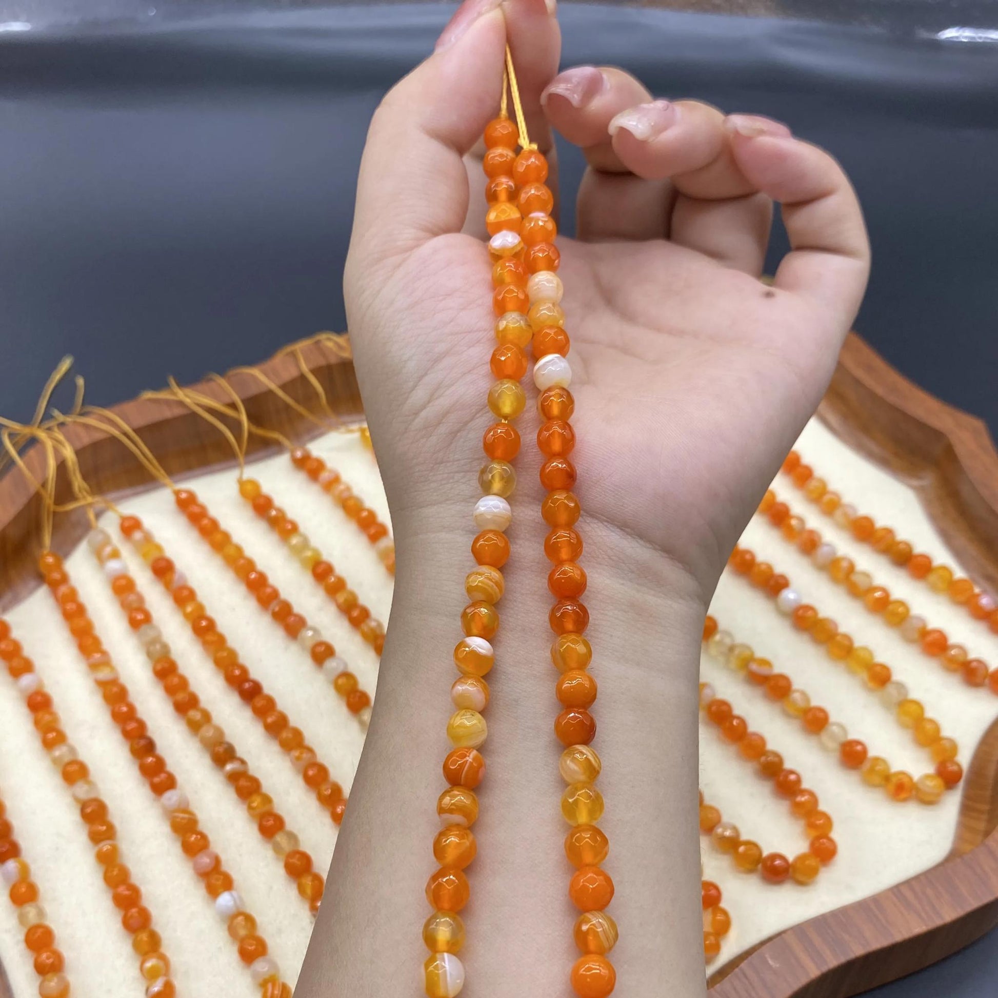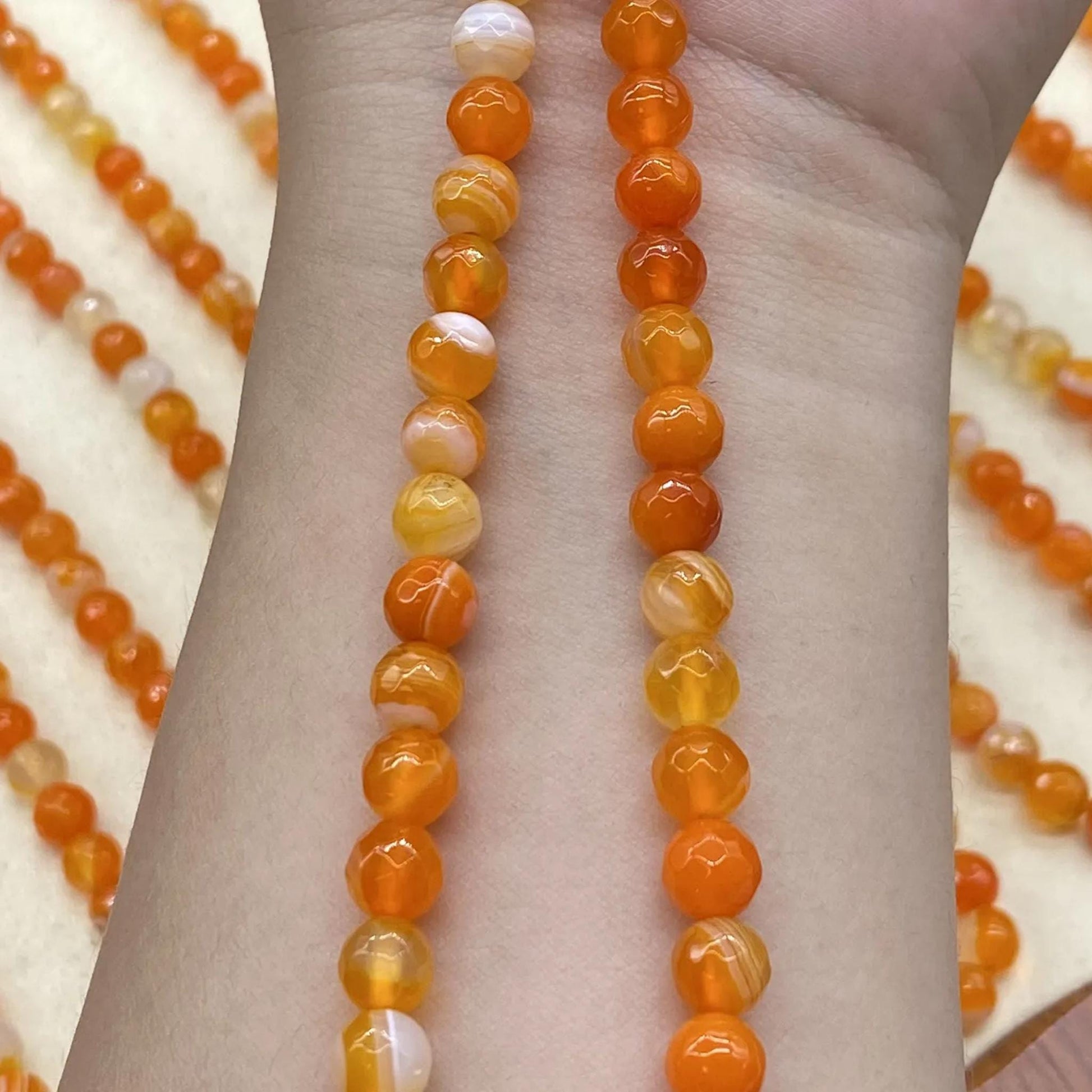 Facettierte orange Achatperlen für DIY Schmuckherstellung, runde geschnittene Edelsteine, banded Muster, ca. 6mm, Strang ca. 38cm