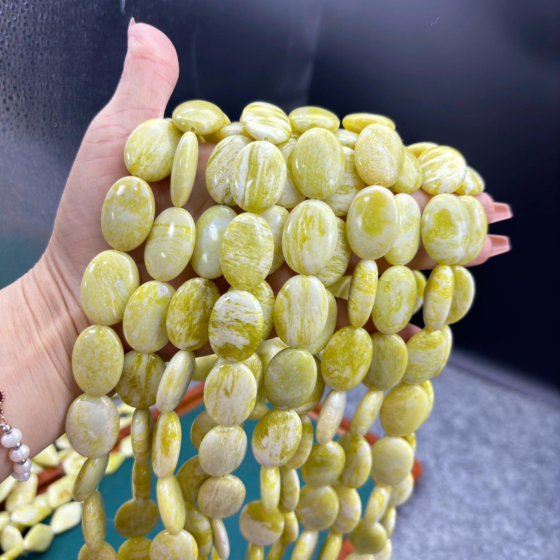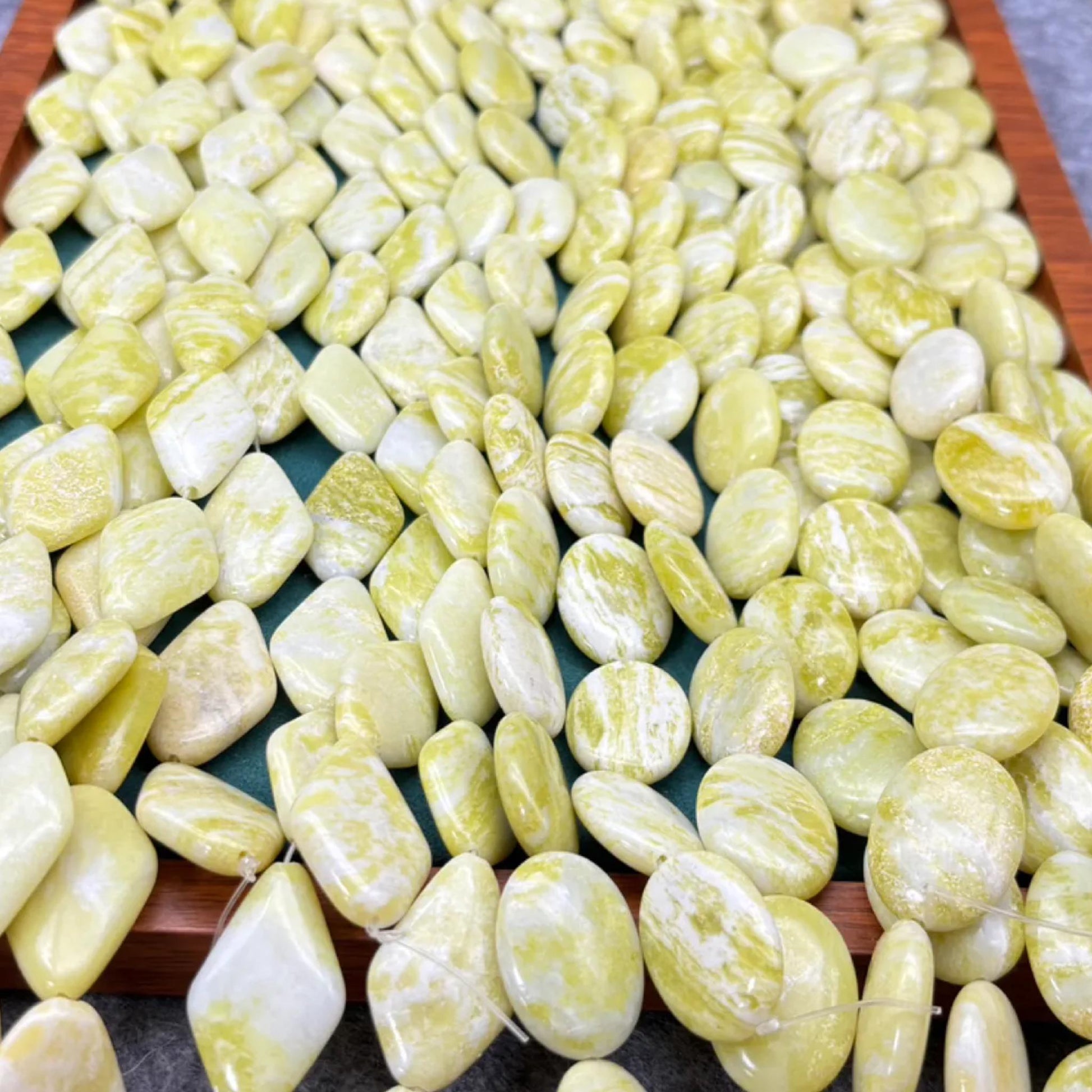 Diese natürlichen Lemon Jade Perlen 💛💚 bringen Frische, Wärme und Natürlichkeit in Ihre DIY-Kreationen. Sie haben die Wahl zwischen klassischer Rhombus-Form oder sanft gerundeten Oval Nuggets - beide sorgfältig poliert und ideal für handgemachten Schmuck im Sommer- oder Boho-Stil.