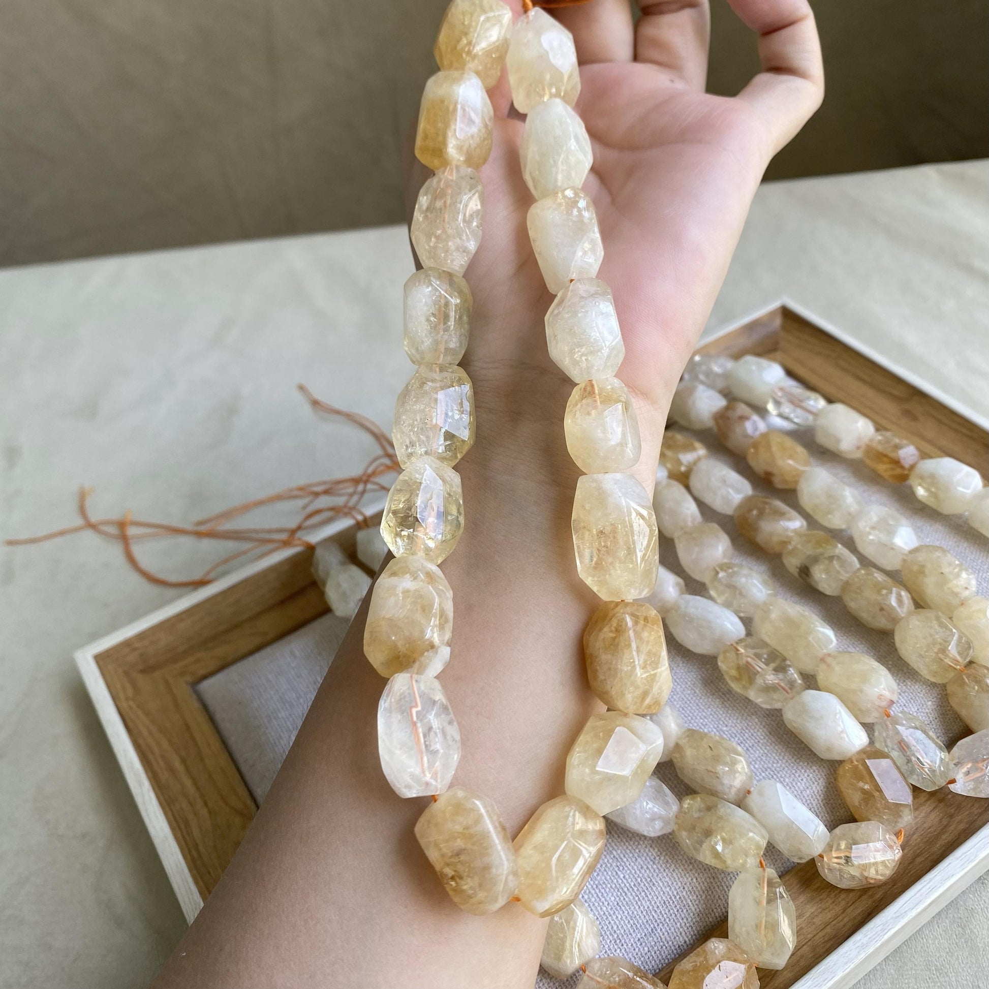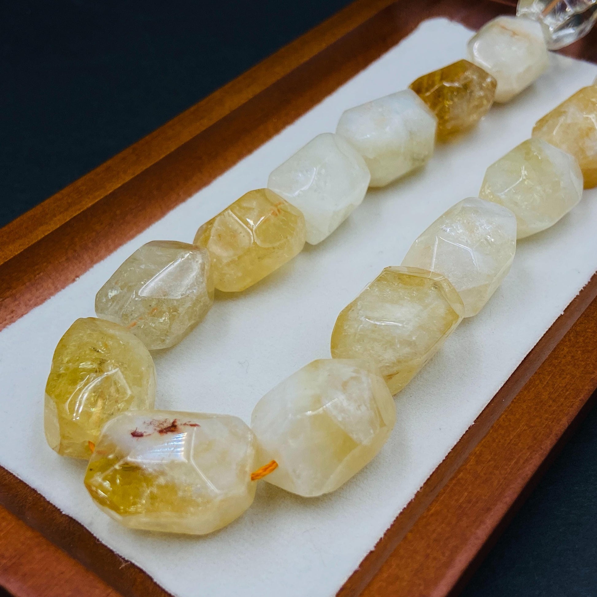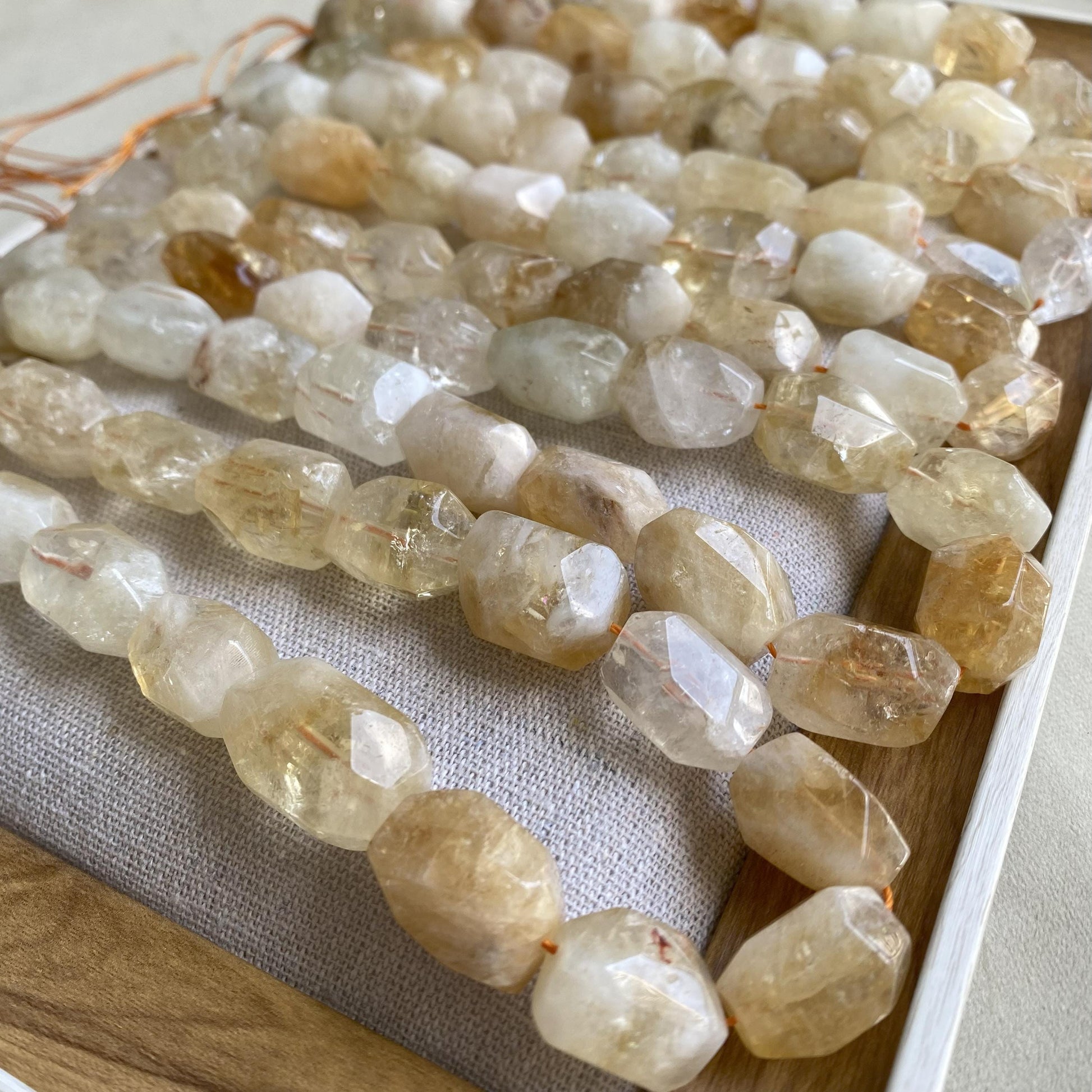 Jede Citrin Perle ist ein Unikat. Farbe, Transparenz und Maserung können leicht variieren - genau das macht ihren natürlichen Charme aus.