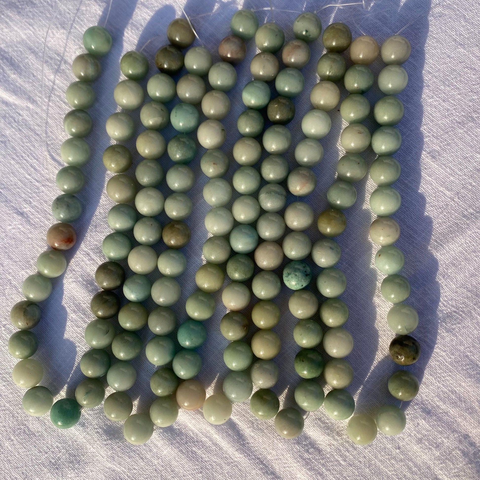 Grüne Jadeperlen für DIY Schmuck, Edelsteinperlen, polierte runde Kugeln, ideal für Armbänder, Halsketten und Heilstein-Projekte.