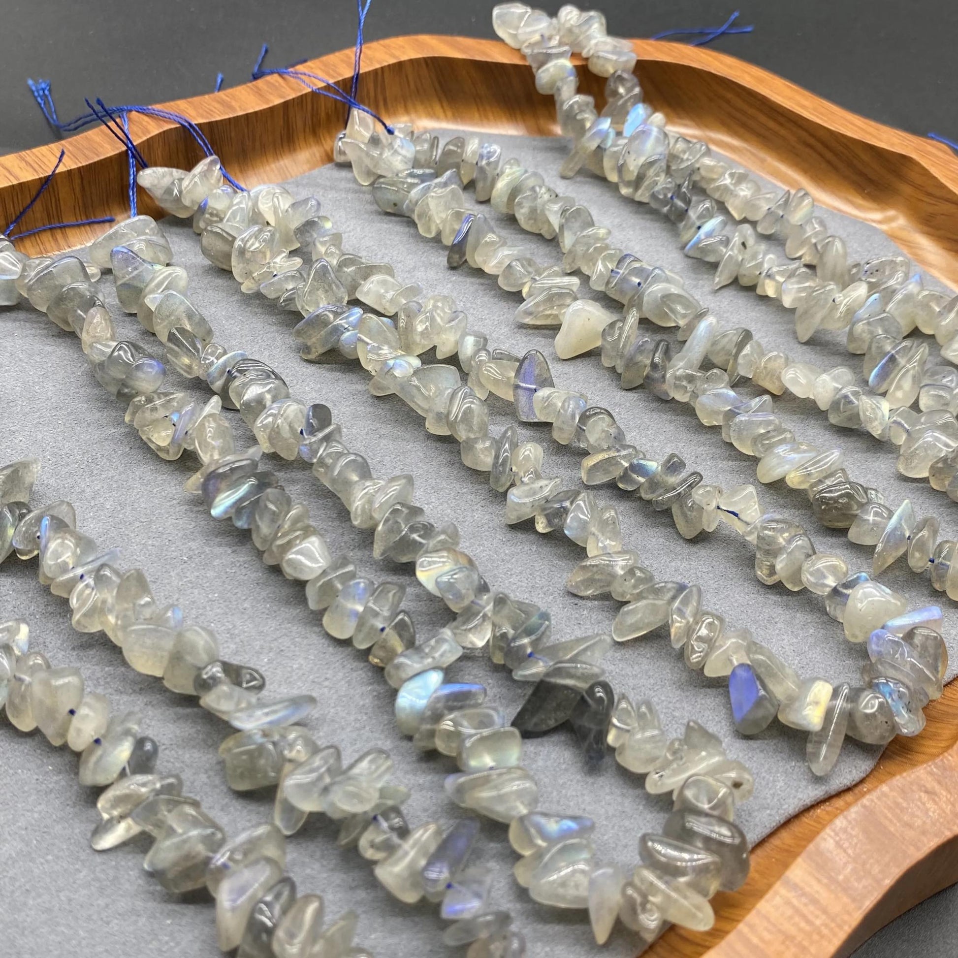 Natürliche Labradorit Splitterperlen Strang, graue unregelmäßige Nugget Edelstein Spacer, glänzende Kristallperlen für DIY Schmuck